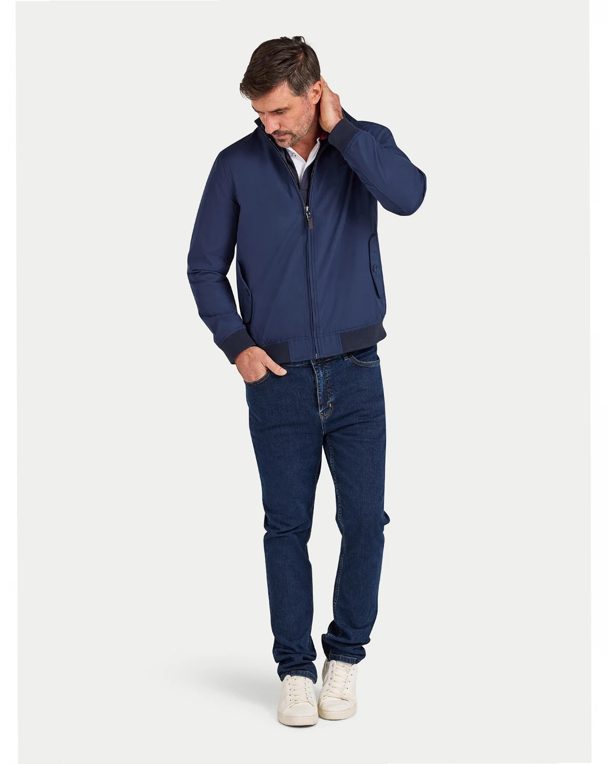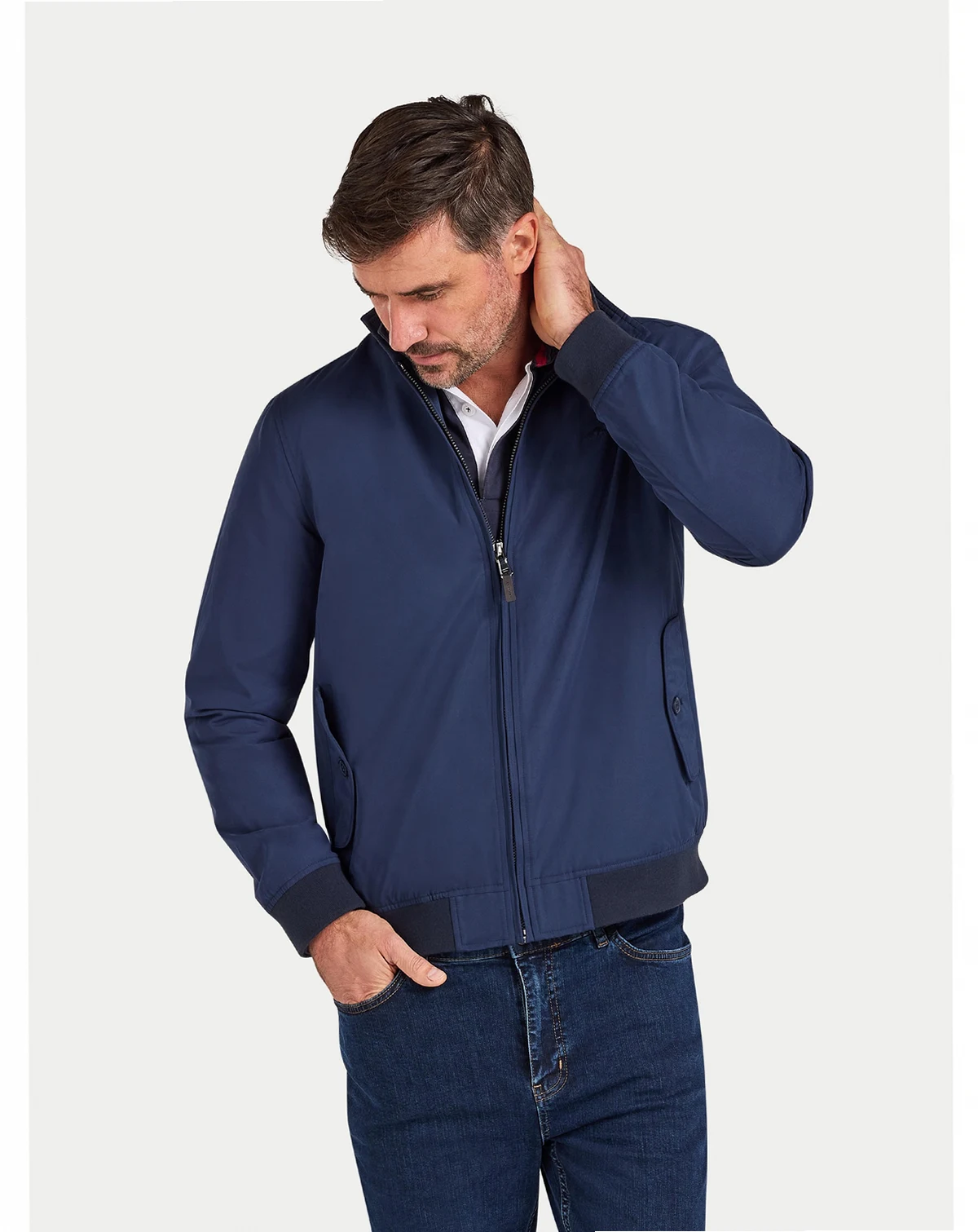 This high-quality navy blue Classic Harrington Jacket is perfect for any casual or smart occasion. Made from a polyester cotton blend, it features a zip-up front and button detail on the collar. Keep your valuables secure in the convenient zip pocket while looking stylish and timeless in this classic jacket.