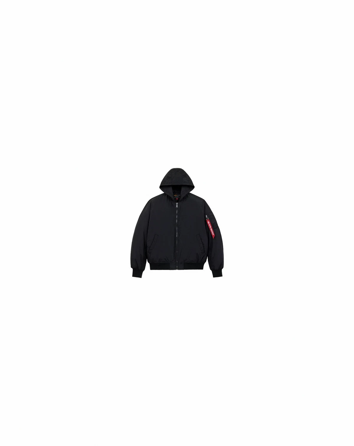 The MA-1 Hooded Oxford Flight Jacket reimagines a military classic with a casual edge. Constructed from durable oxford nylon, this relaxed-fit jacket features a self-fabric hood for a seamless look. Traditional details like rib knit trim on the hem, cuffs, and collar maintain its iconic silhouette, while two welt pockets and a sleeve utility pocket with red ribbon add authentic function. Stylish and versatile, this jacket is a go-to layer for transitional weather.
