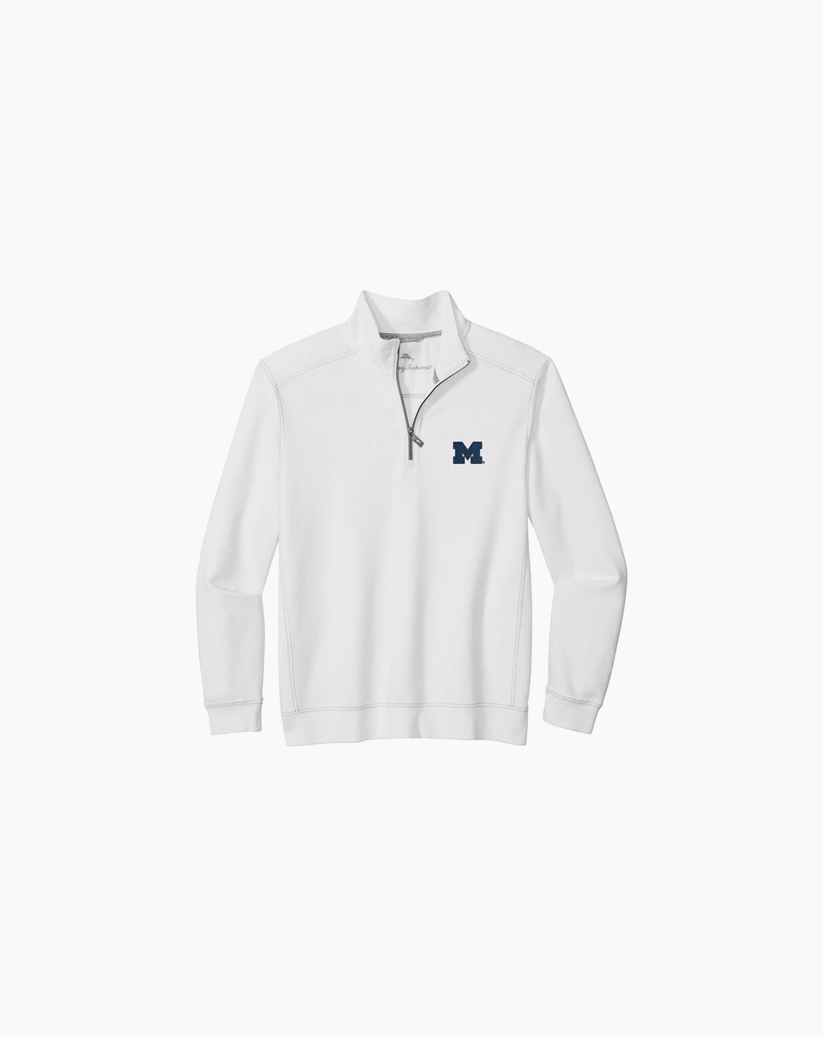 Elevate your game day attire with this Michigan Wolverines Montego Bay Half-Zip Jacket from Tommy Bahama. Its rib-knit cuffs and waist hem provide a comfortable fit with unrestricted movement, making this jacket an ideal choice for running errands or lounging around the house. The team logo embroidered on the left chest shows your love of the Michigan Wolverines.