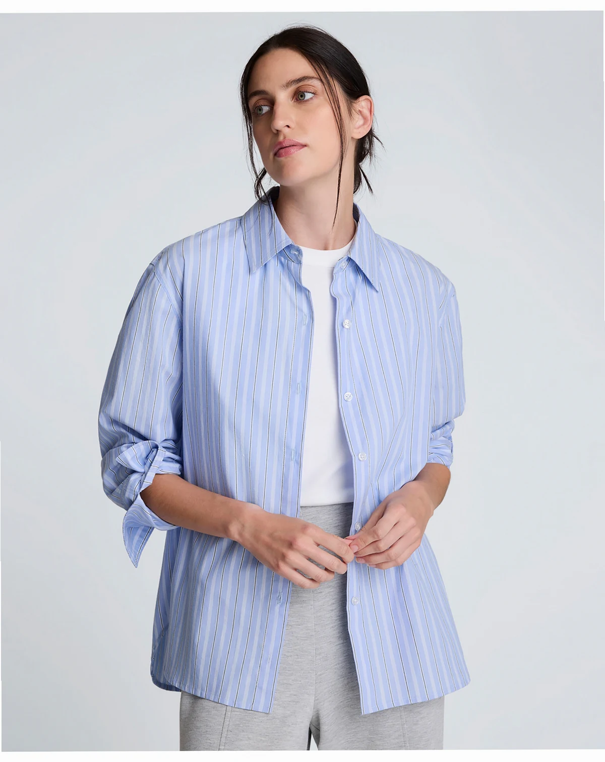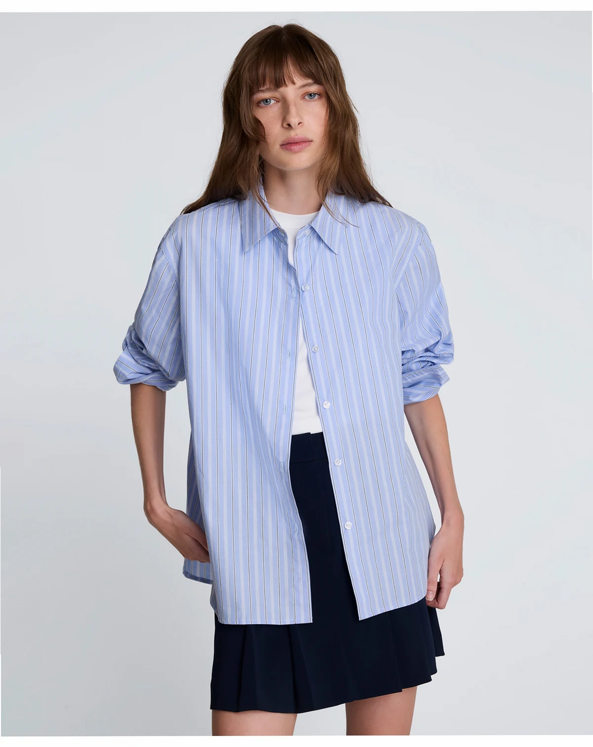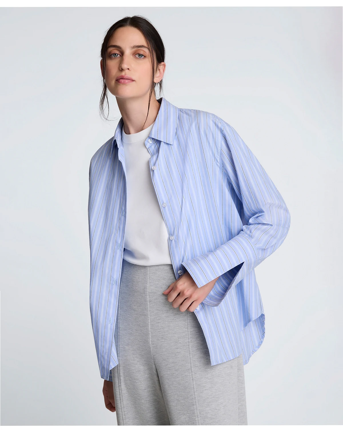 Freshen up your wardrobe with this striped button-down shirt from Kenneth Cole. Mixed directional stripes and long sleeves bring a modern, versatile touch.