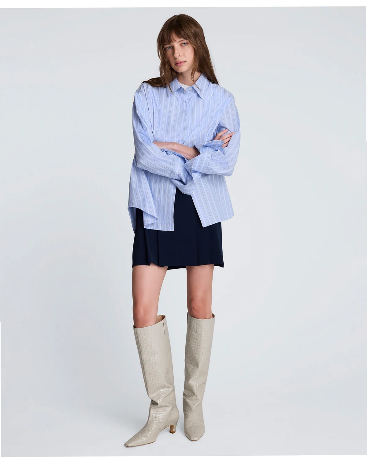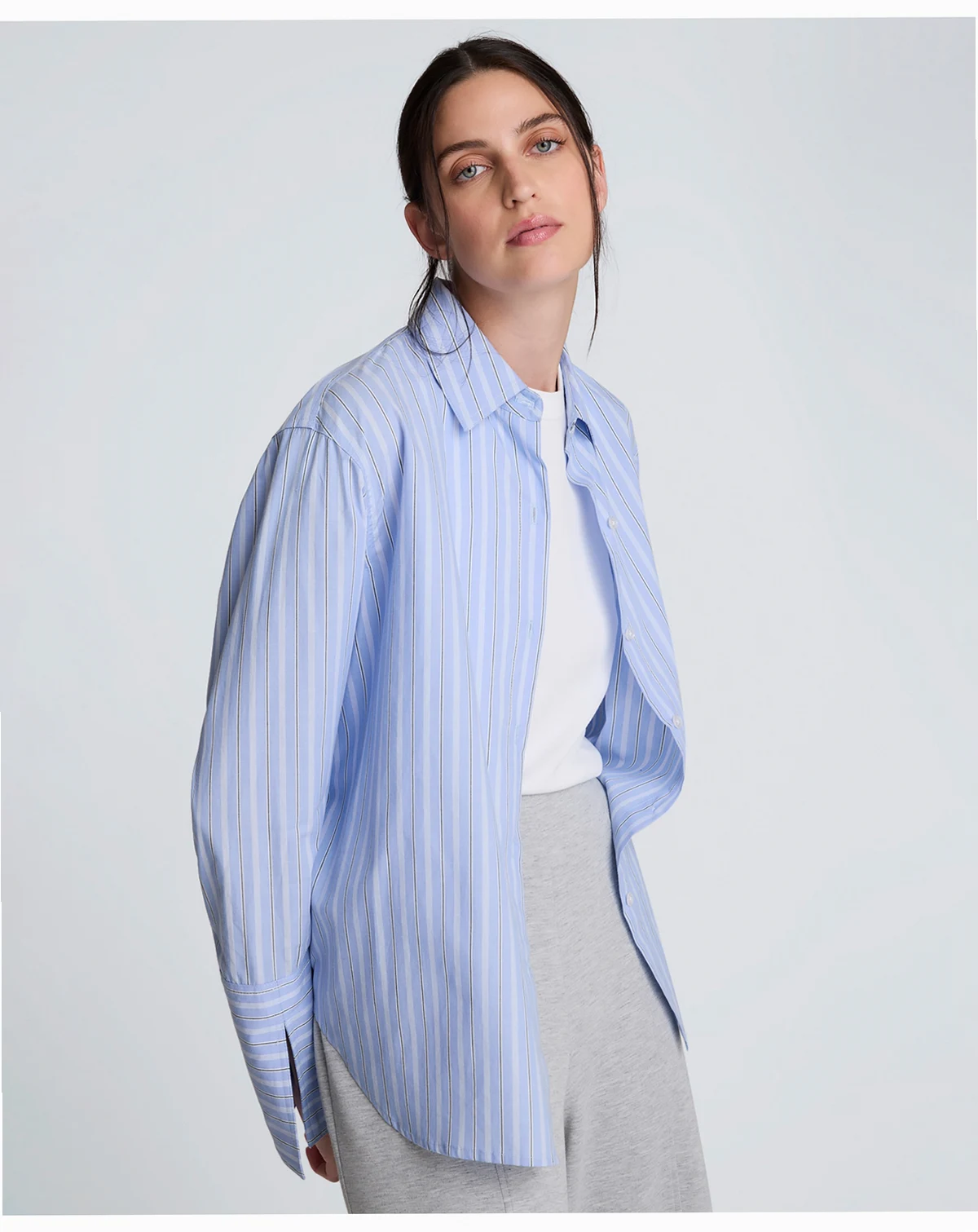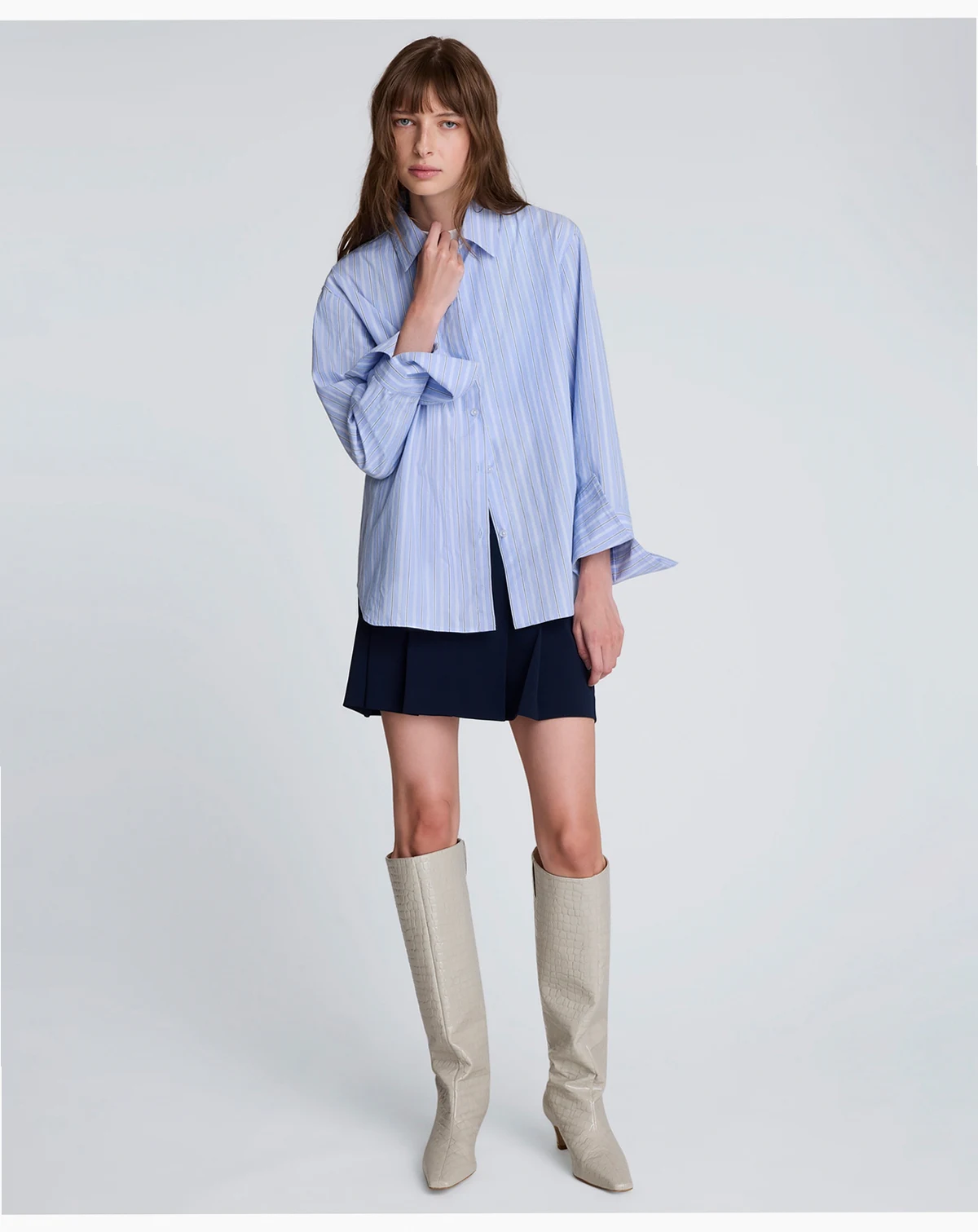 Freshen up your wardrobe with this striped button-down shirt from Kenneth Cole. Mixed directional stripes and long sleeves bring a modern, versatile touch.