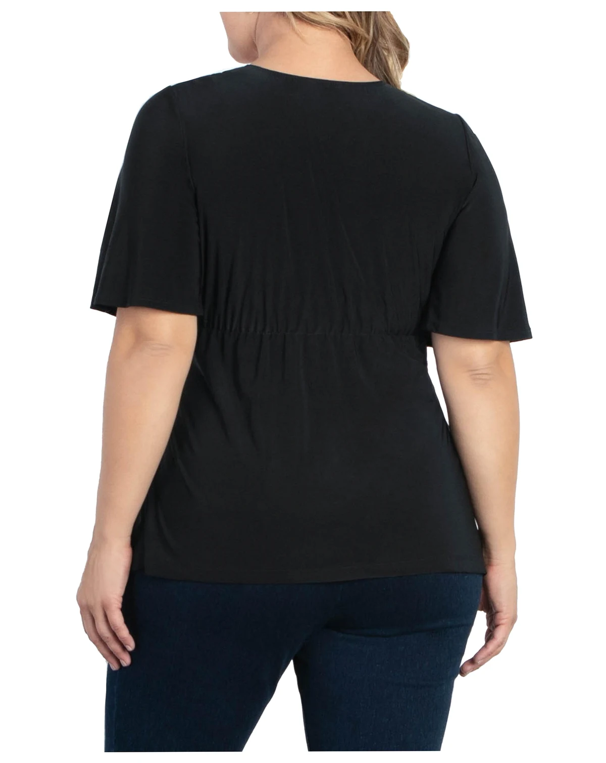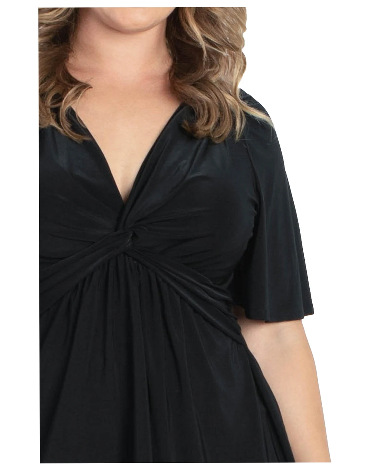 The Abby Twist Top is a classic, seasonless silhouette. Made exclusively in women's plus sizes, this top features Intentional detailing such as a flattering v-neckline, twist detail, and feminine flutter sleeves. This sophisticated knit top is perfect for the office or a night out.