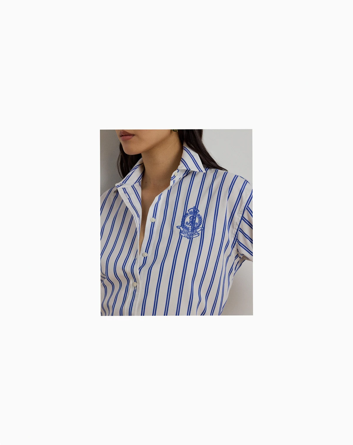 Designed with polished ease, this Lauren Ralph Lauren button-up shirt balances dropped shoulders with clean stripes for effortless wear. Lightweight cotton supports comfort while maintaining a sharp finish.