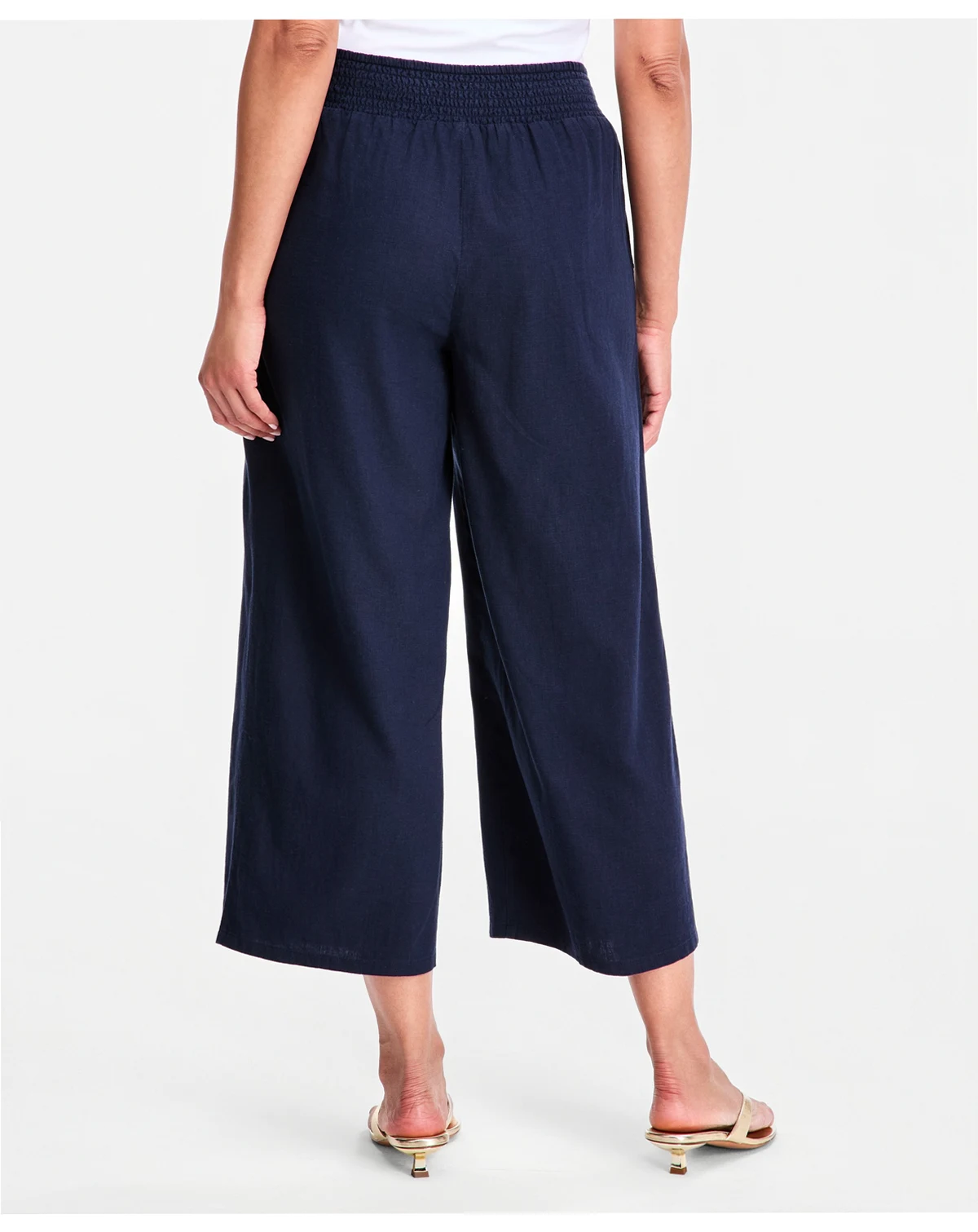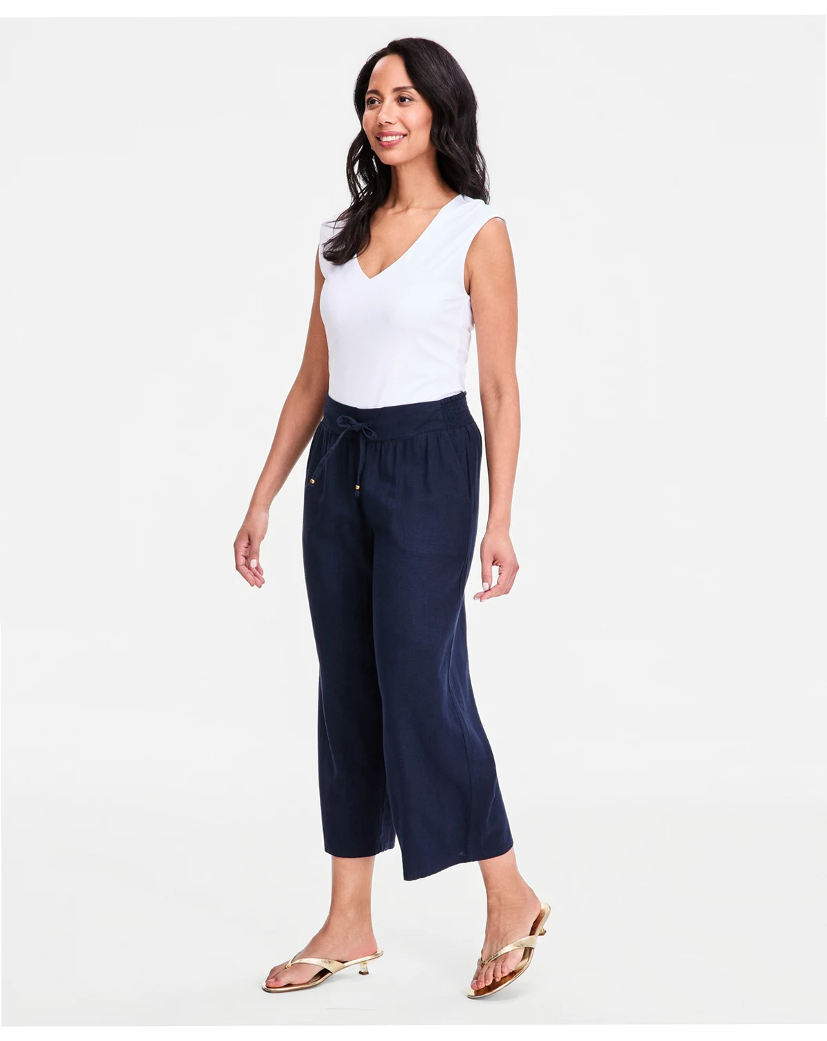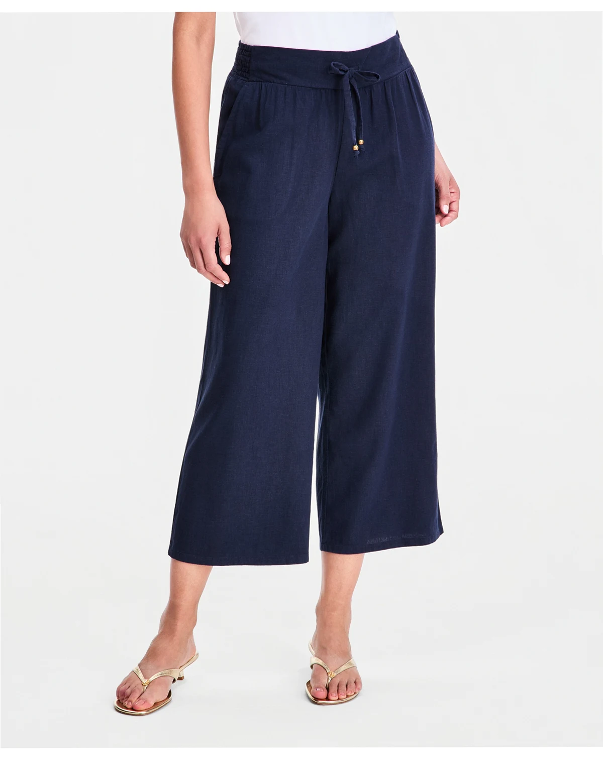 Women's Cropped Drawstring Linen-Blend Wide-Leg Pants, Macy's Exclusive