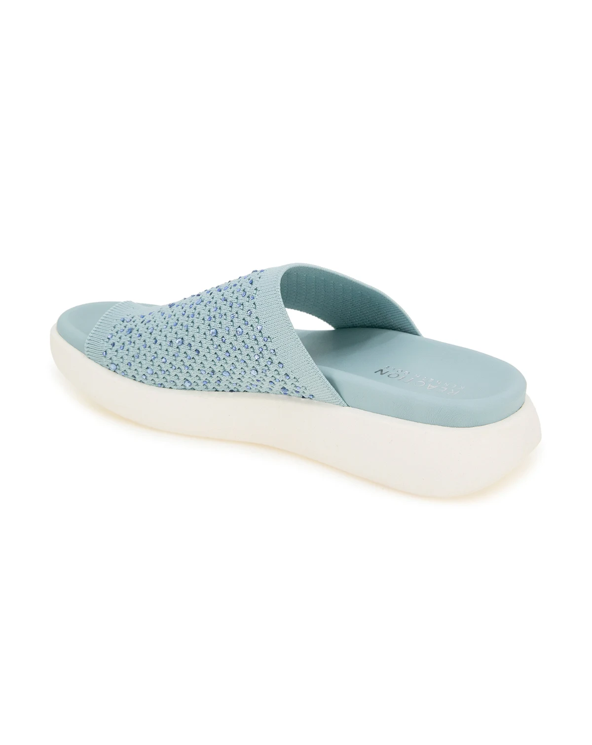 Refresh your casual style in the Kenneth Cole Reaction Teffi Knit sandals. Featuring a jeweled knit upper and a cushioned sole, they deliver both comfort and elegance. Perfect for sunny days, beach getaways, or laid-back afternoons, these sandals bring a serene touch to your every step.