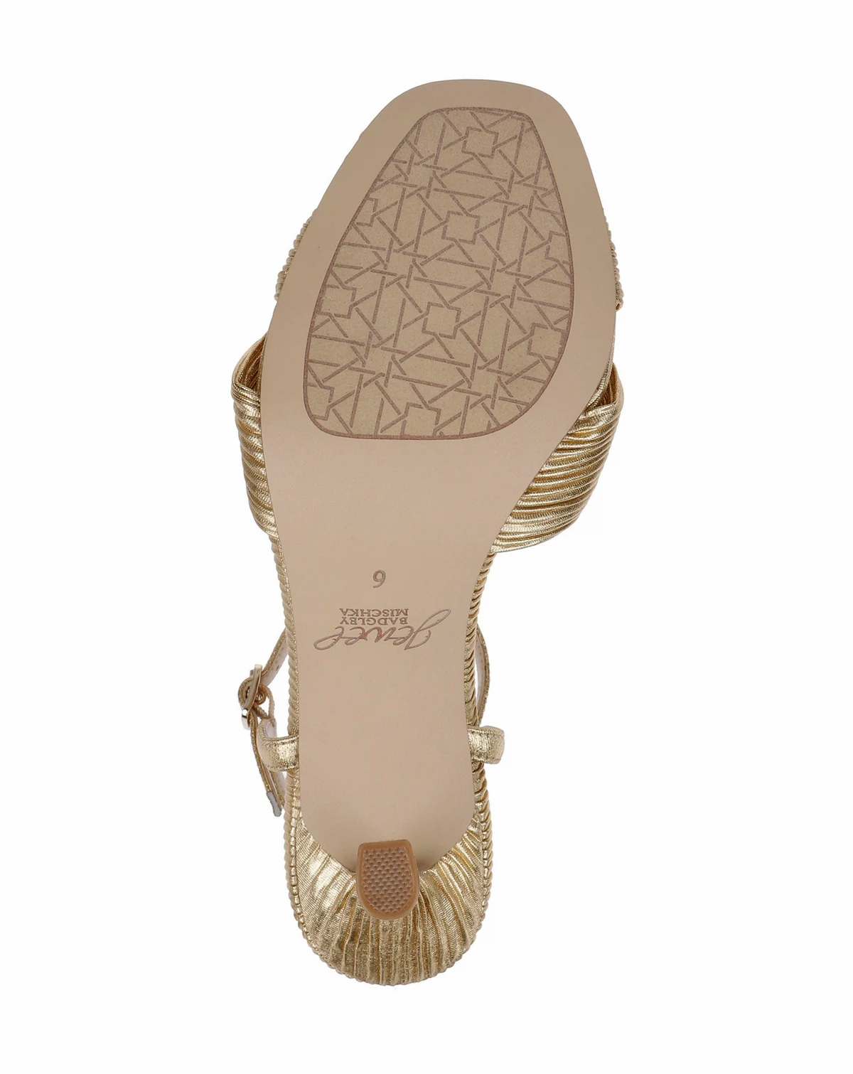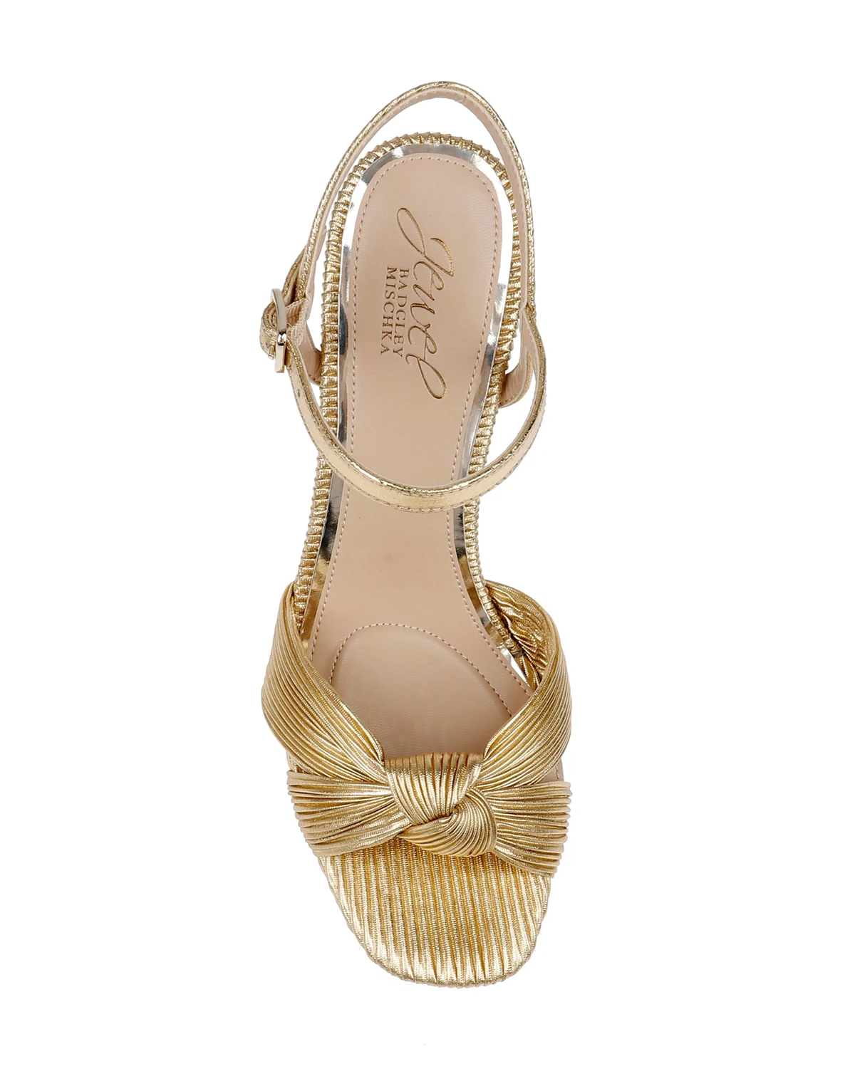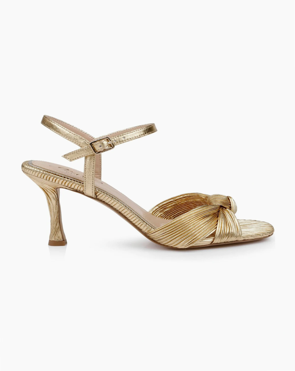 The delicate plisse texture of the knotted front vamp refines the appeal of this stiletto sandal.
