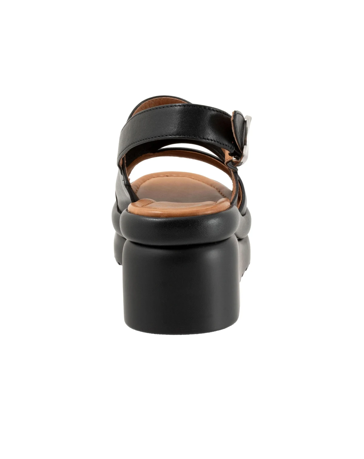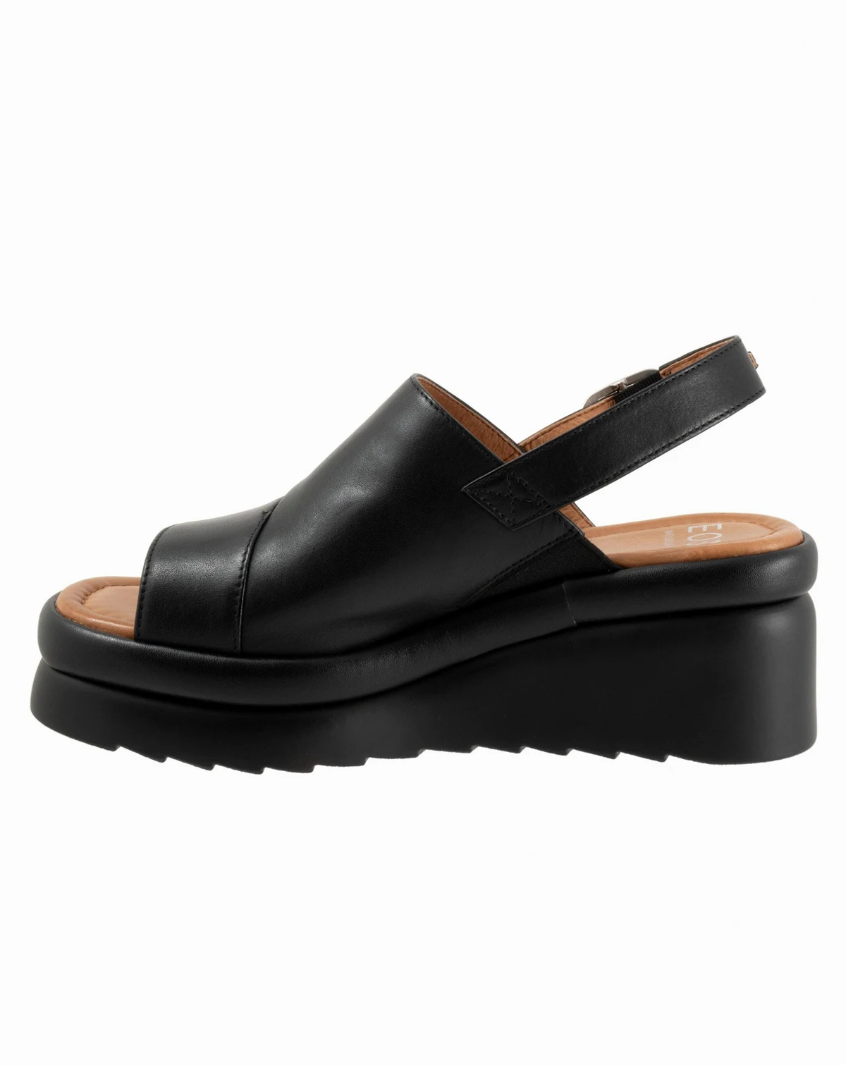 Leather Upper and Ankle Strap: Featuring a soft, partially unlined leather upper with a cross-over front strap and an ankle strap with hook and loop closure for a secure and adjustable fit.; 2 3/4" Heel height