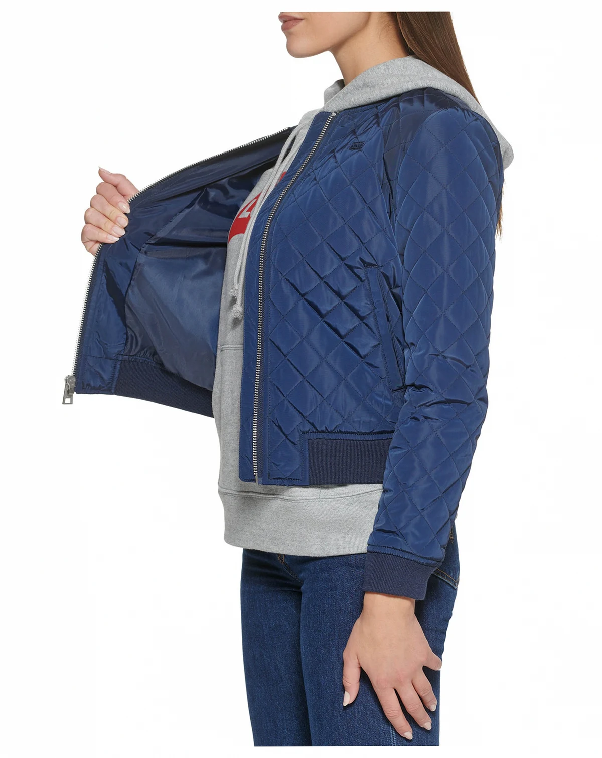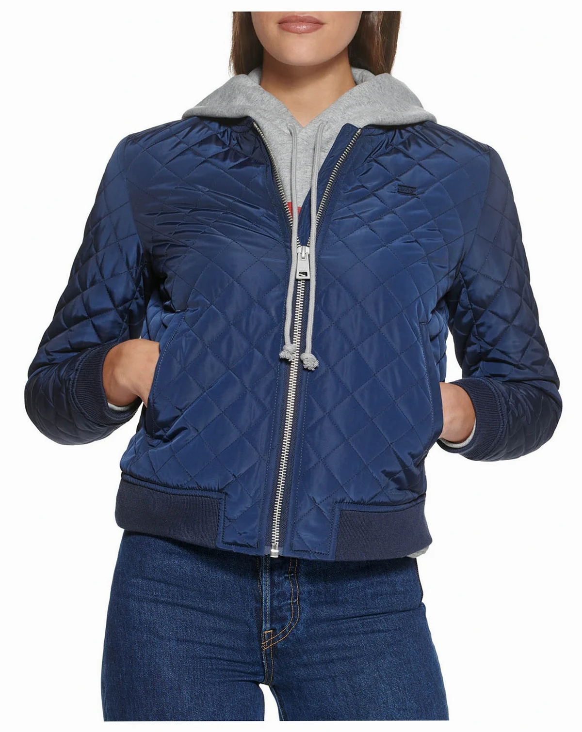 Classic bomber jacket in lux memory fabric with rib knit collar, cuffs, and hem for comfortable fit, center front zipper closure, two lower welt pockets, Signature Levi's red tab at left side seam