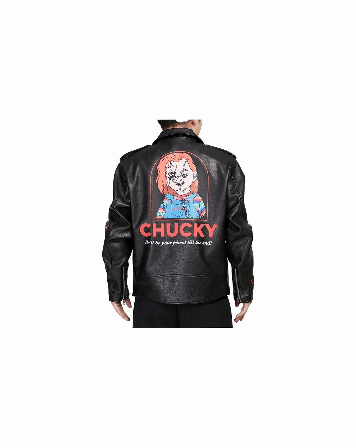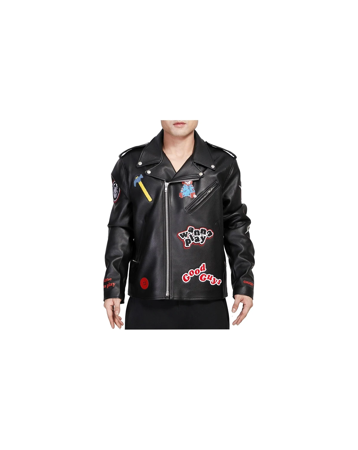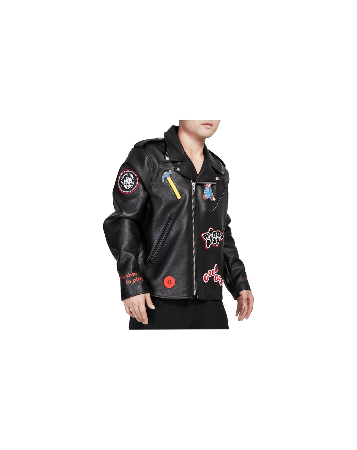 Men's Black Chucky Wanna Play Biker Full-Zip Jacket