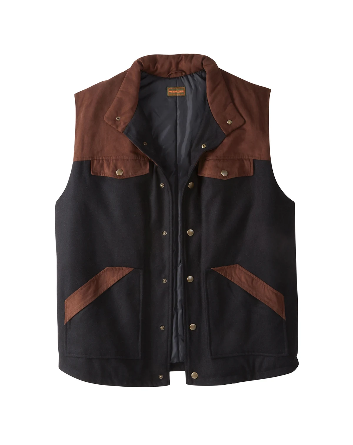 As the temperature starts to drop, be prepared without overheating in the Boulder Creek Multi-Pocket Vest. It features a rugged contrast color faux suede and the lining contains 3 oz. polyester fill for extra warmth. The dual chest pockets and lower slant pockets are perfect for keeping your belongings close. Relaxed fit. Snap front, stand collar. Upper chest pockets, lower slant pockets. Polyester lining and 3 oz. fill. Big length abt. 32" Tall length abt. 34". Wool/polyester. Machine wash. Imported