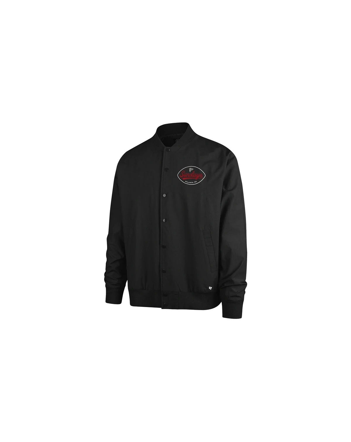 Show your passion for the Atlanta Falcons with this stylish Sundays Euro Step Twill Bomber Jacket. This midweight '47 Brand jacket boasts an oversized fit, perfect for layering on game days or cool evenings. The rib-knit stand-up collar, cuffs, and hem provide a classic bomber look, while the front slip pockets offer convenient storage. It's a bold statement piece that effortlessly blends comfort and fandom for any event.