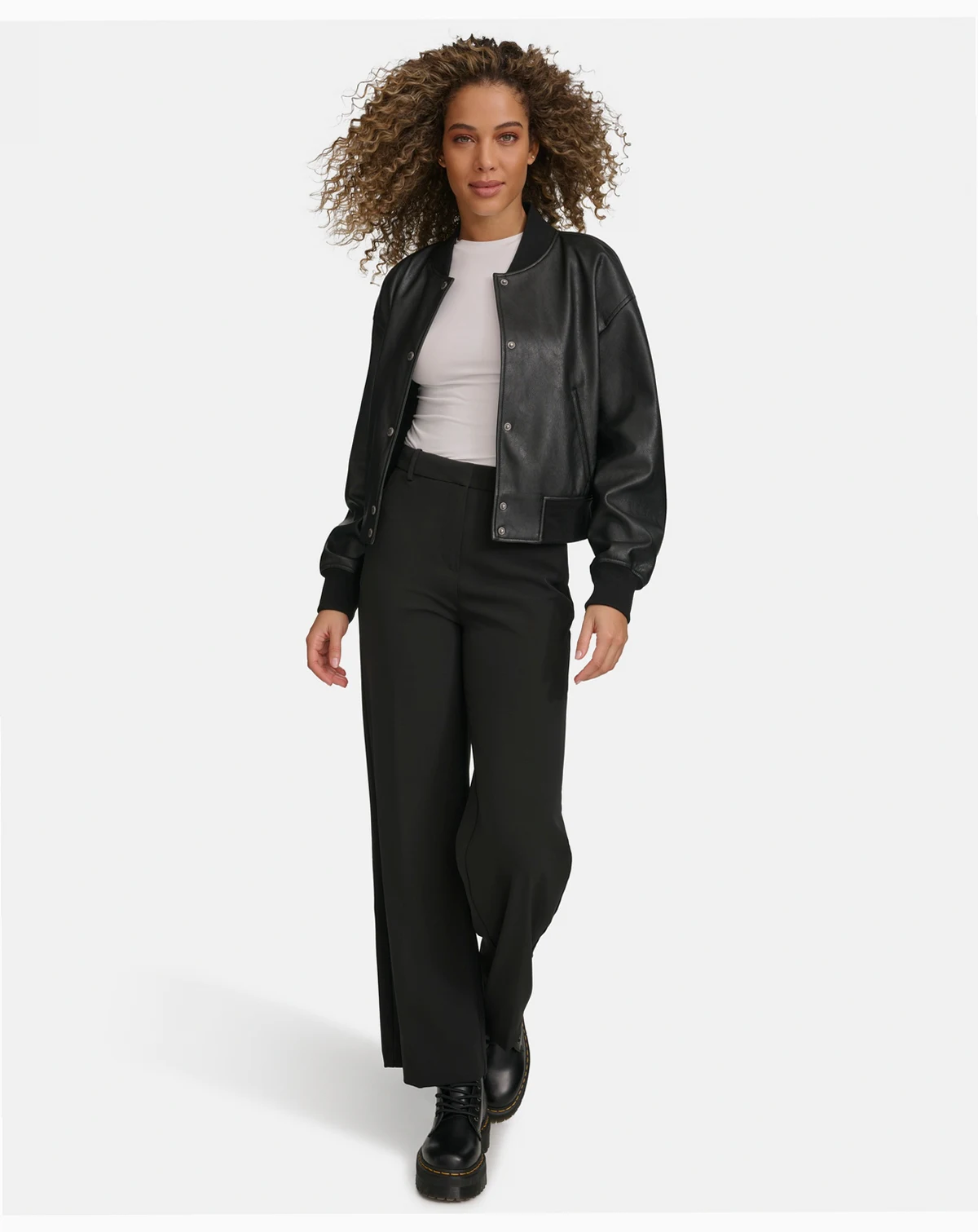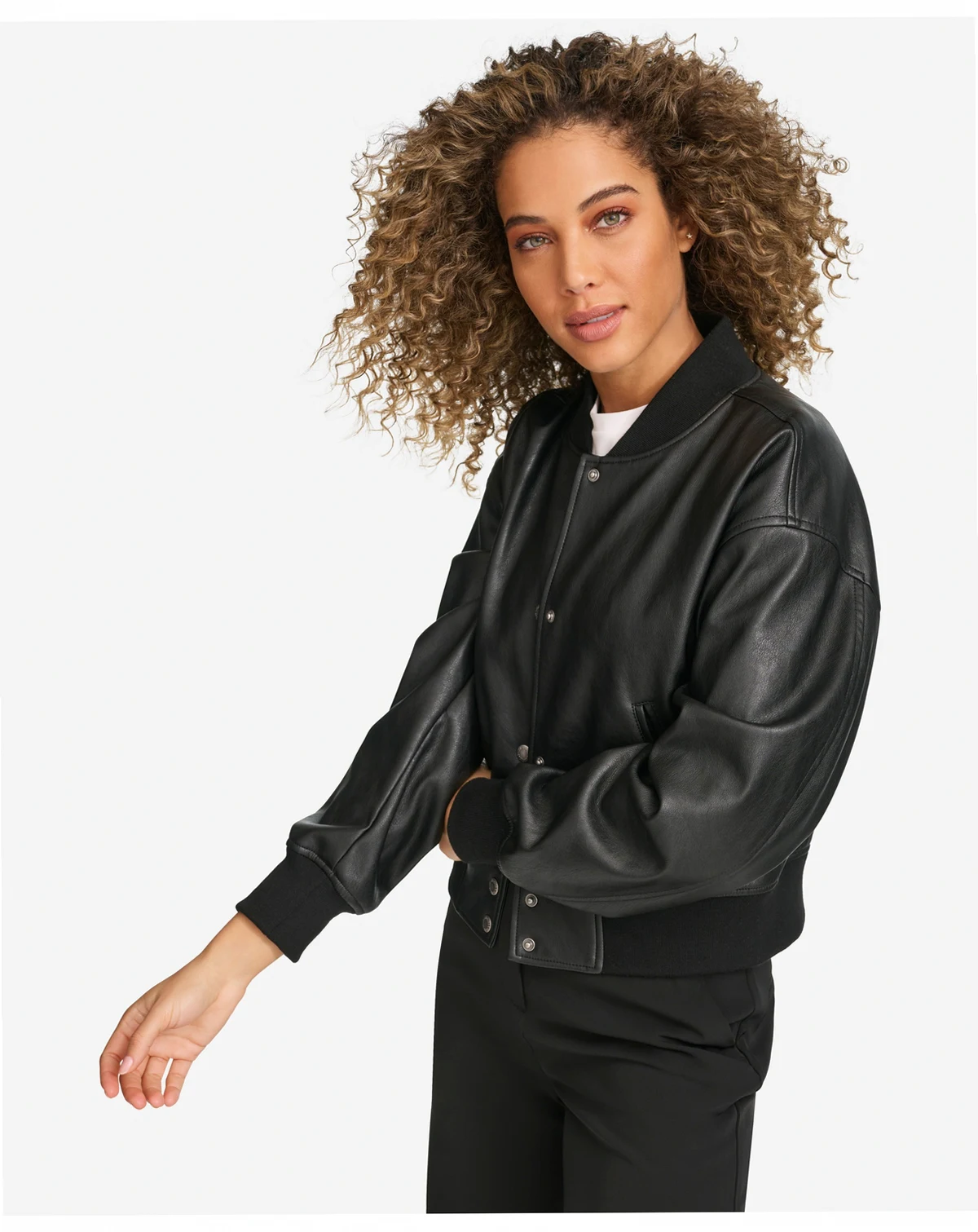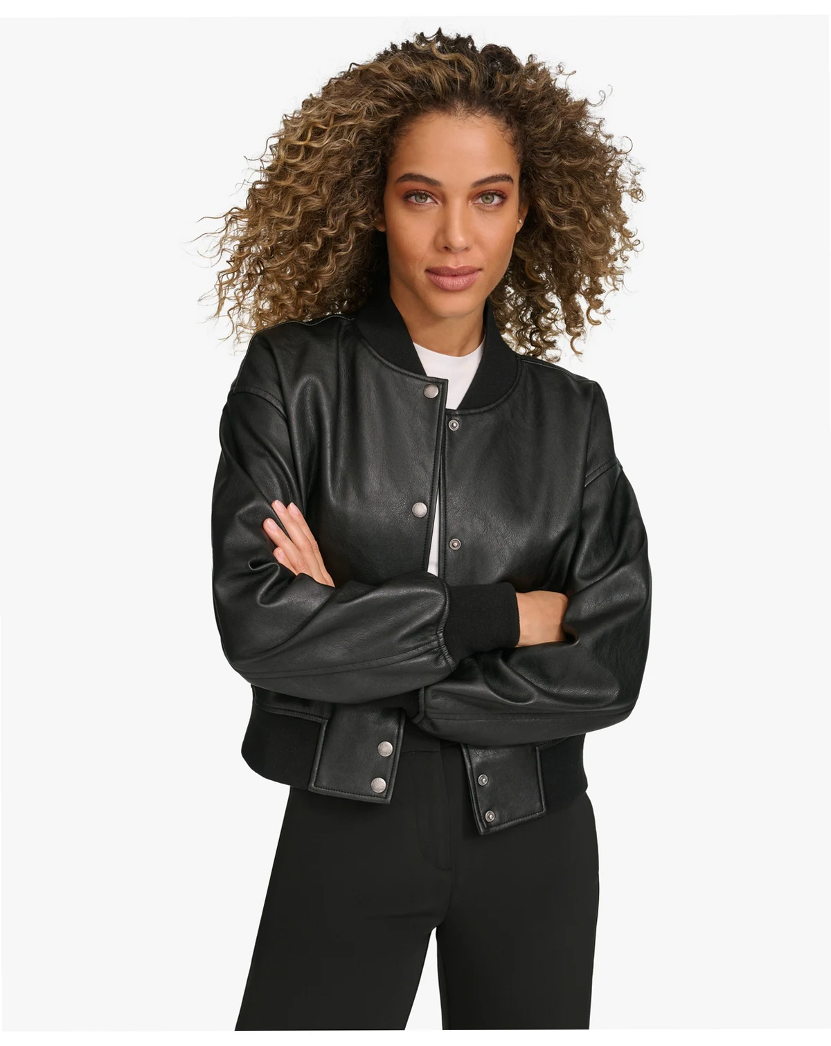Combining vintage athletic style with a modern twist, this women's cropped varsity bomber showcases a snap front closure for easy wear. Its cropped design offers a fresh, trendy look that pairs well with jeans or skirts.