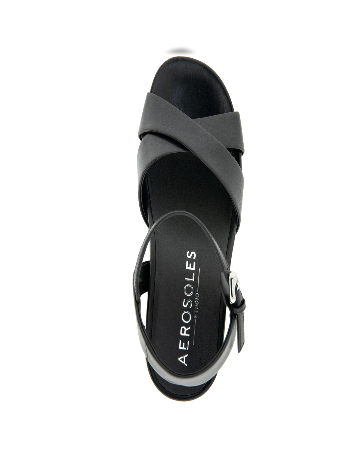 Aerosoles Women's Chabella flatform heeled sandal combines sleek design with comfort. The Diamond iFlex outsole provides flexibility, while the mid-height heel offers lift and stability. The round toe and buckle detail make these sandals perfect for day-to-day wear.