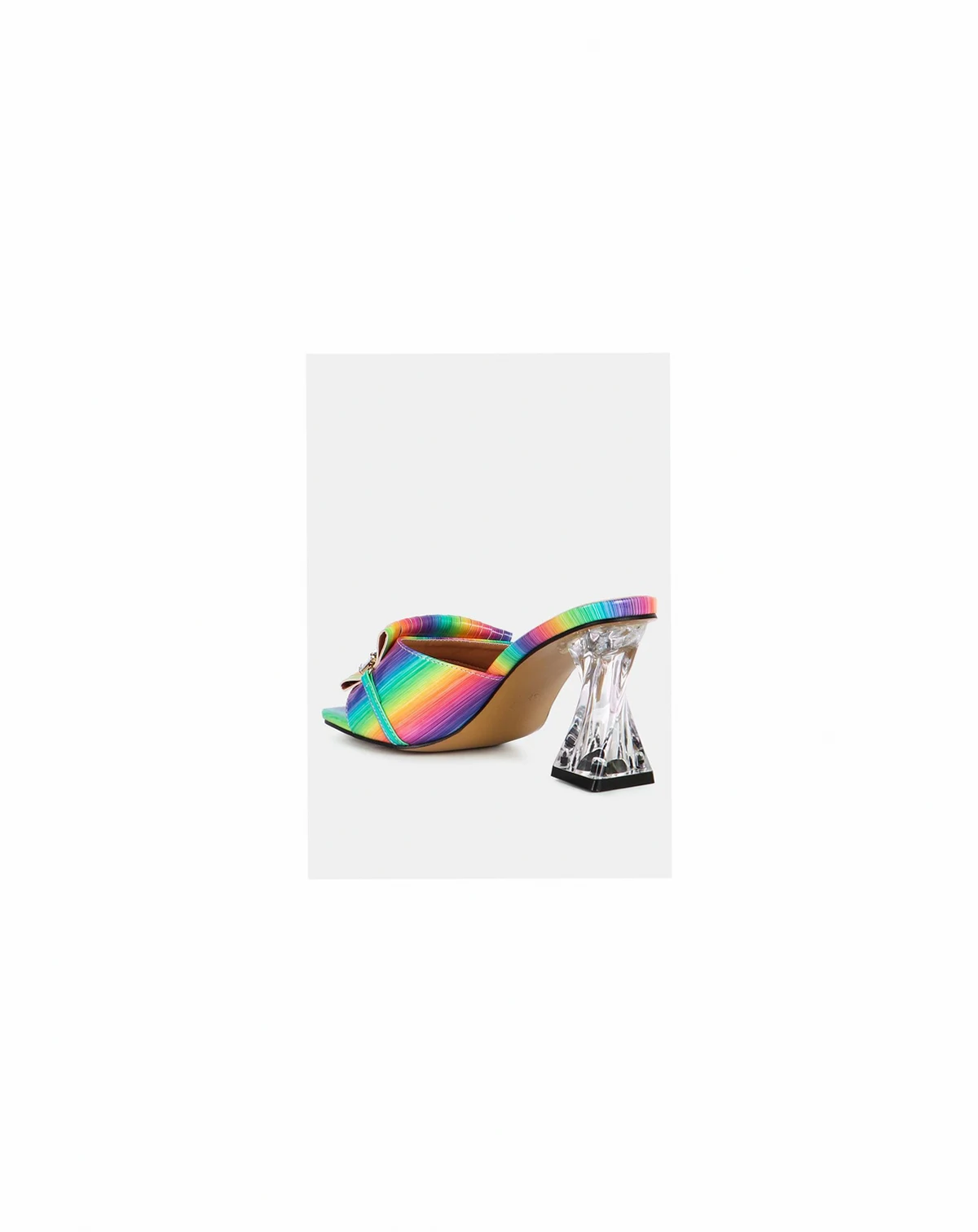 Clear heel detail sandals with ruched straps and rhinestone details look gorgeous. The mid-high spool heels are perfect for brunches and casual occasions. They are versatile and can be paired with anything in your wardrobe making them your new go-to pair for everyday errands and occasions!