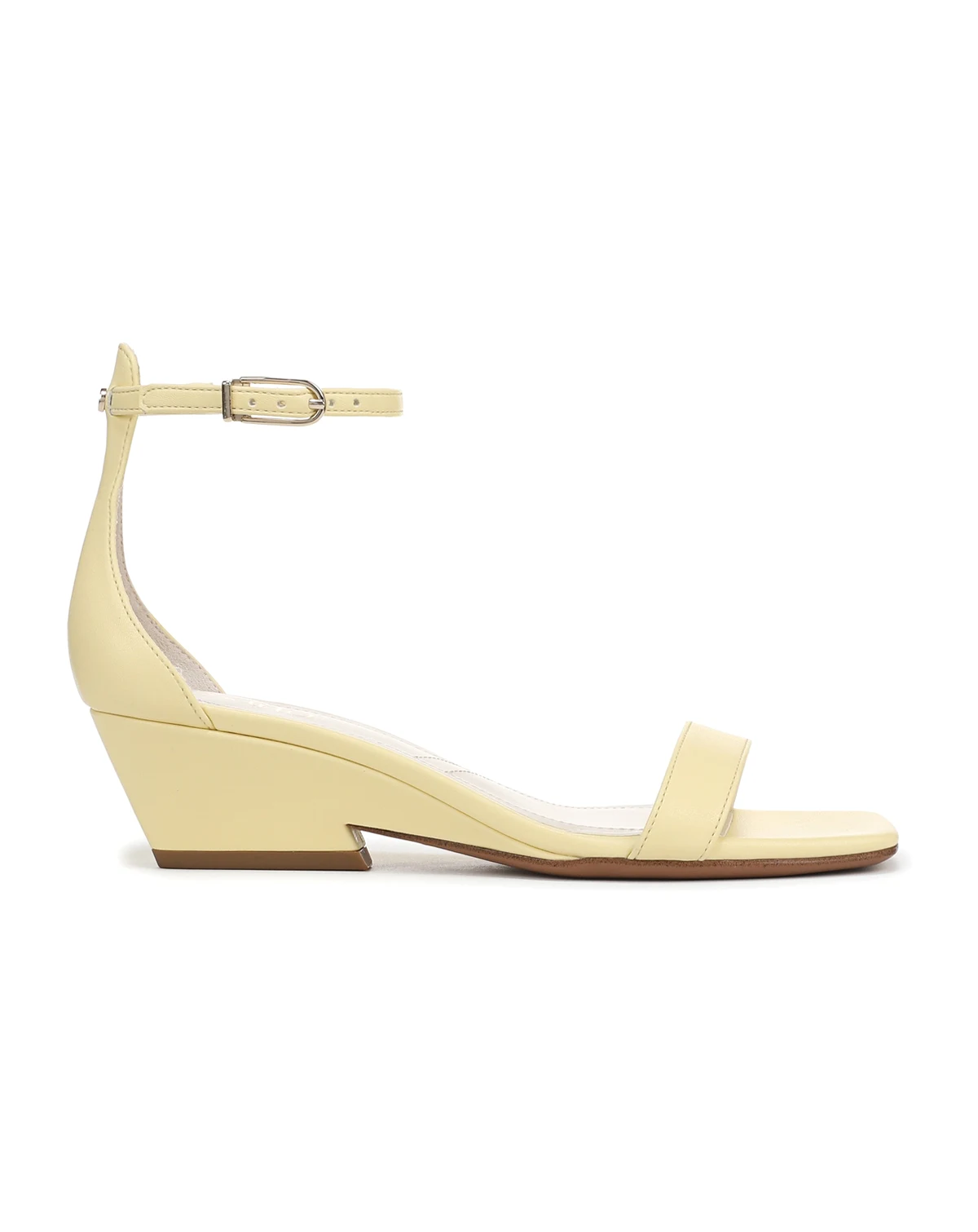 This classic design gets a modern update with its chic ankle strap, artistic wedge heel and square toe.