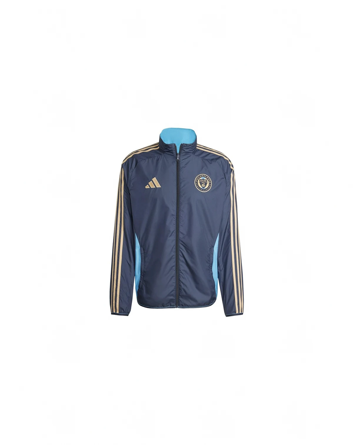 Embrace your Philadelphia Union pride with this 2025 Anthem Reversible Full-Zip Jacket from Adidas. This reversible jacket offers two distinct looks in one, featuring screen print graphics on one side and a sublimated design on the other. Made from materials, it boasts a comfortable midweight construction ideal for moderate temperatures, while elastic cuffs and a bottom hem offer a secure and personalized fit.