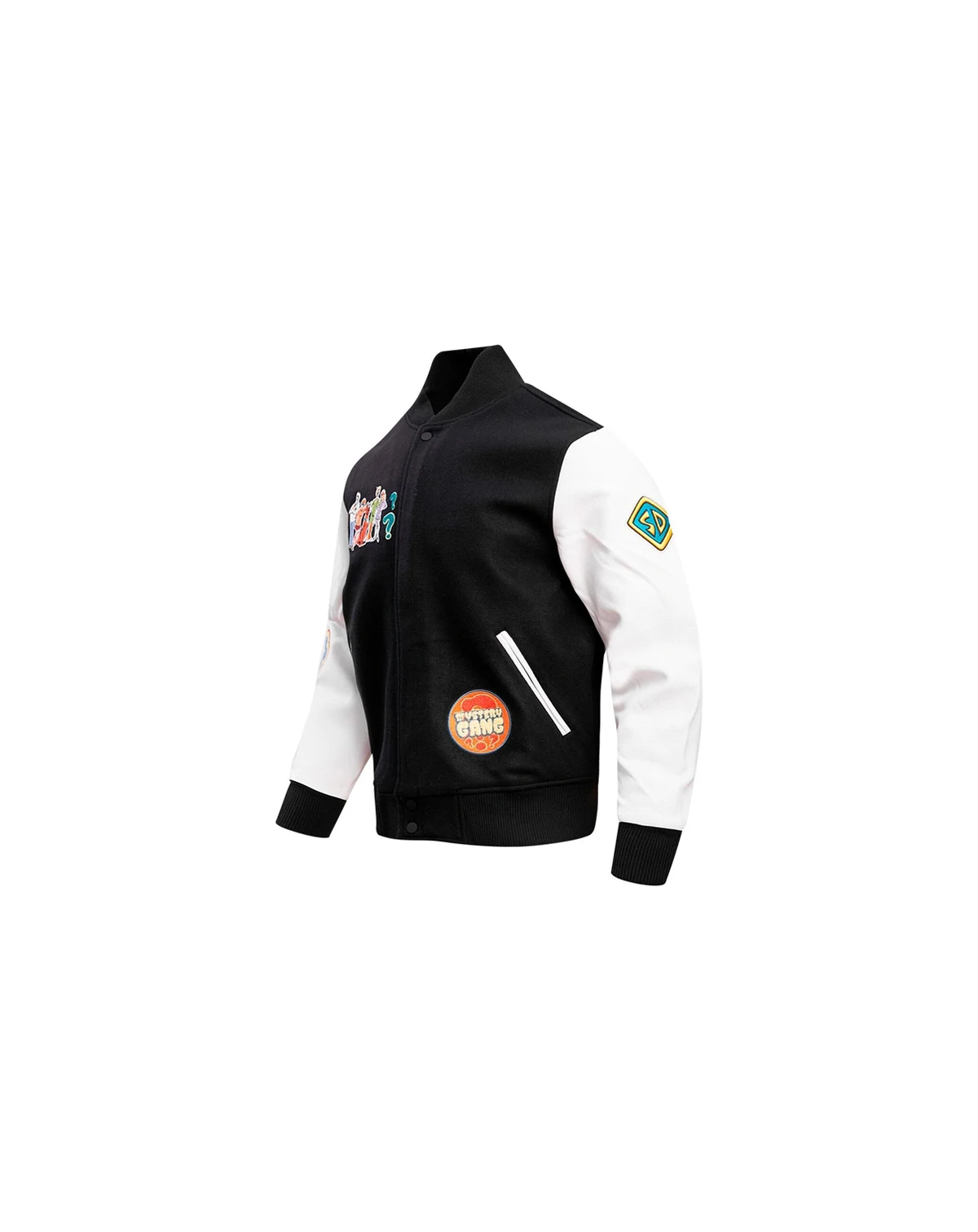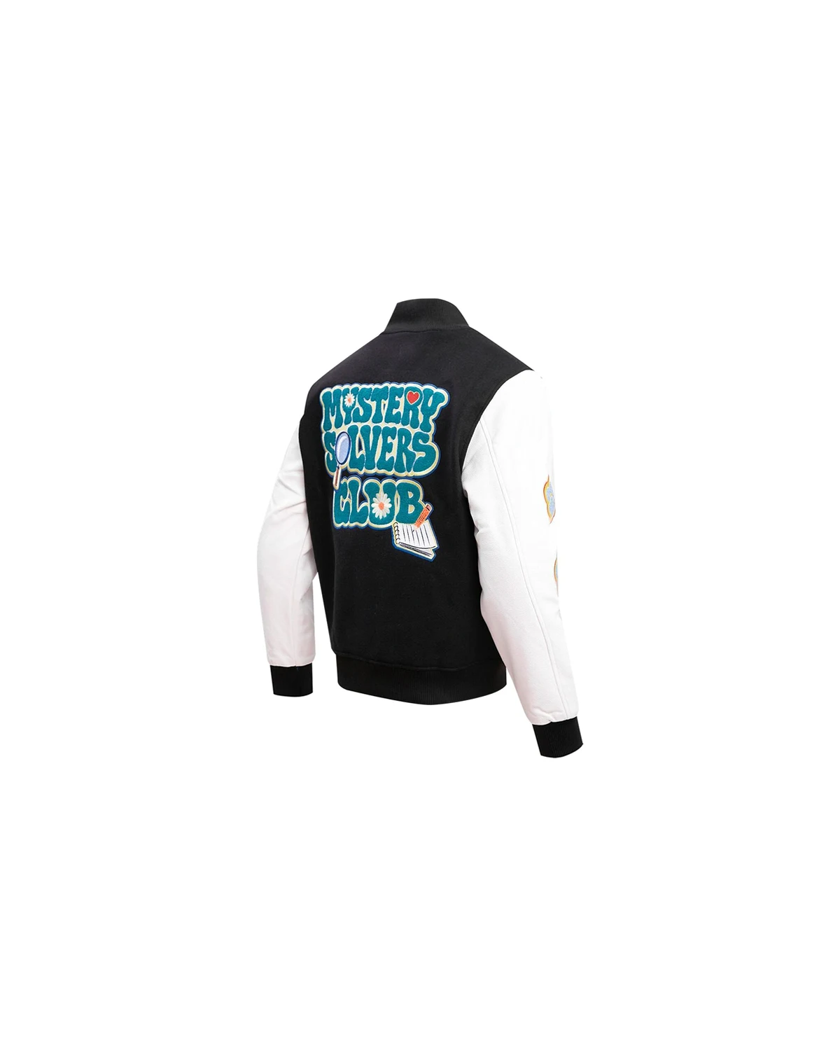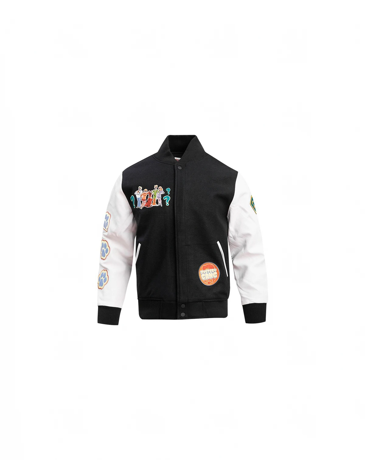Step out in Scooby-Doo style with this Mystery Solvers Club full-zip varsity jacket from Freeze Max. It features streetwear-inspired patch graphics of the iconic canine and his pals with eye-catching chenille details. The faux leather sleeves give this Scooby-Doo jacket a classic finish.