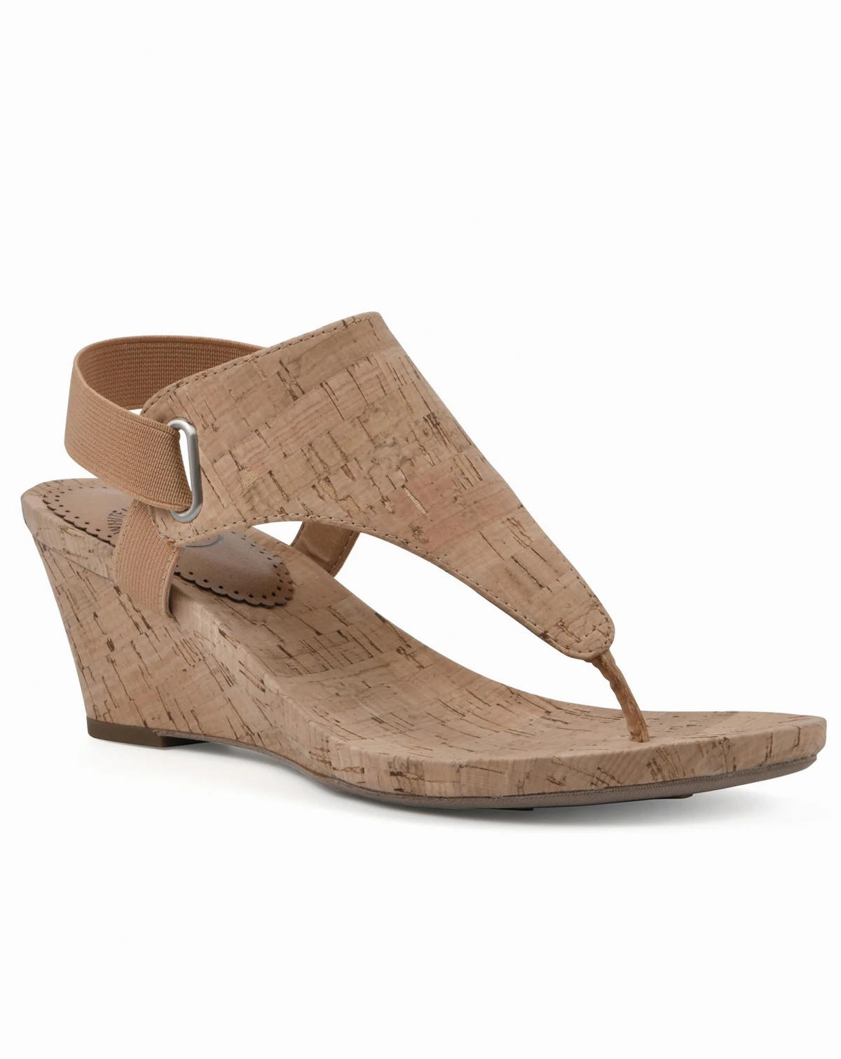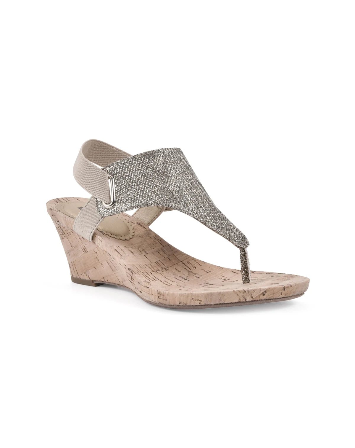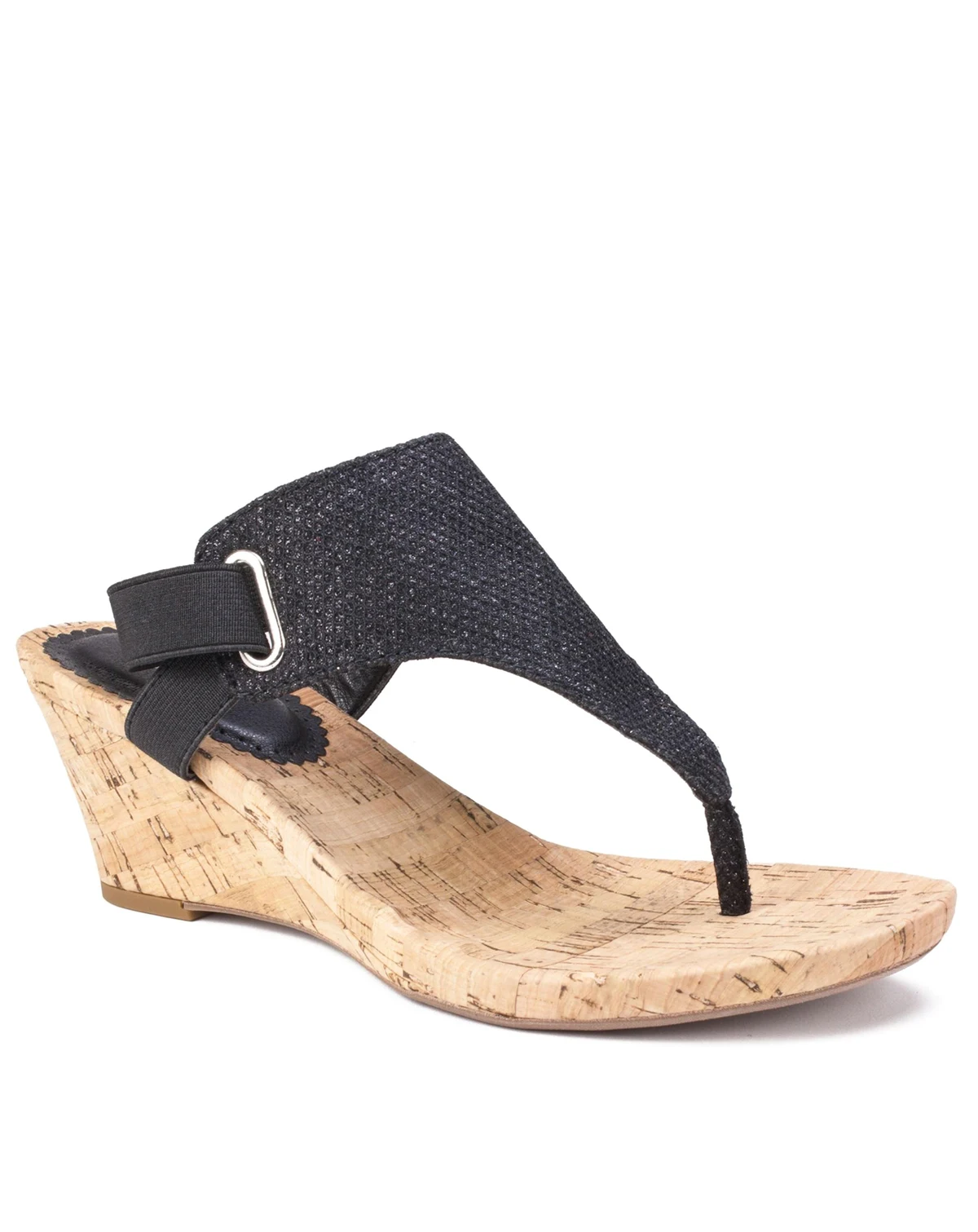 Feel great in the all good thong wedge sandal by White Mountain shoes with a natural cork wrapped footbed and elastic heel strap. Wear them with shorts, capris, skirts and dresses. A style so comfortable and versatile you'll never take them off.