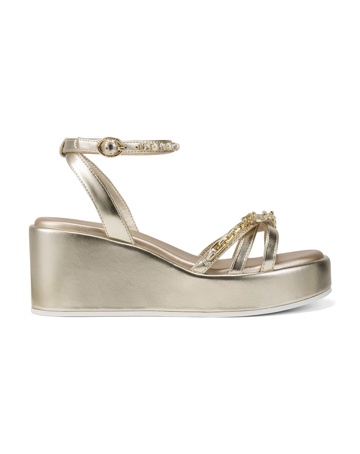 Step into elegance with the Karl Lagerfeld Paris Clemons Ankle Strap Wedge Sandal. Crafted for the discerning fashionista, these sandals blend style and comfort effortlessly. The chic ankle strap ensures a secure fit, while the sophisticated wedge design elevates your look from casual brunch to evening soirées. Perfect for those who demand both luxury and versatility, these sandals promise to be your go-to choice for any occasion.