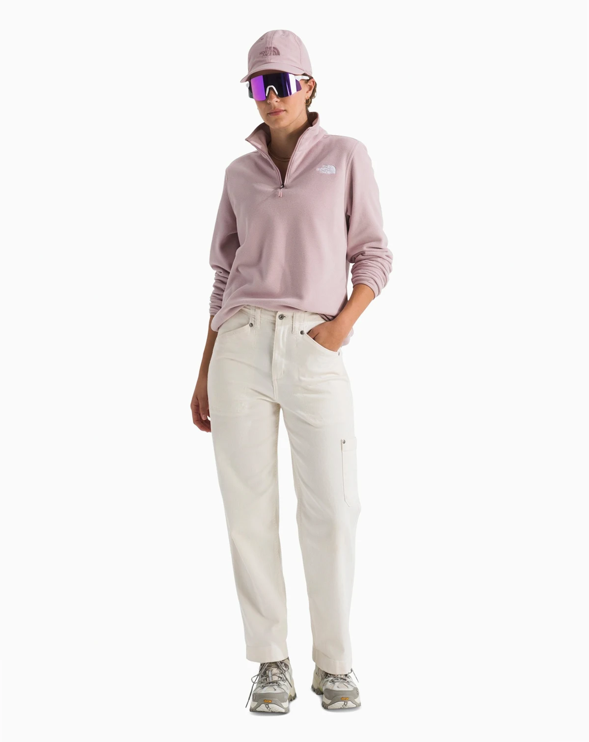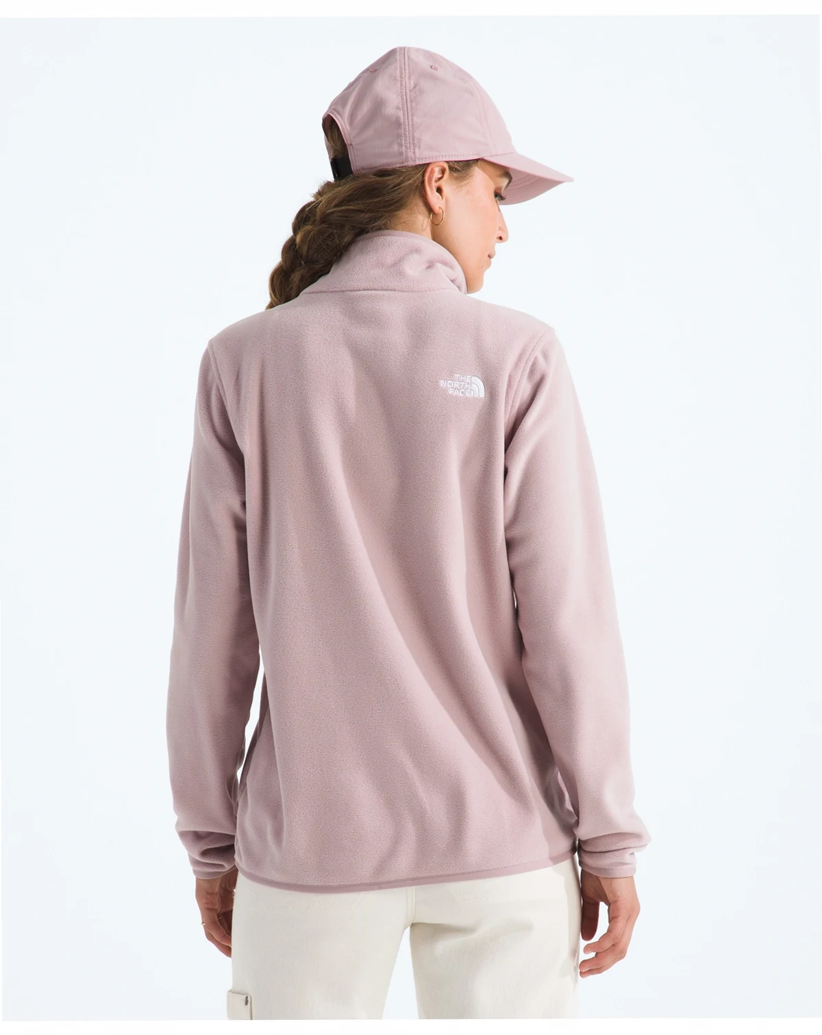 Performance comfort defines this The North Face quarter-zip fleece jacket, styled with a lightweight build and a streamlined stand collar. Concealed-zip hand pockets and stretch binding enhance ease of movement and everyday wearability.