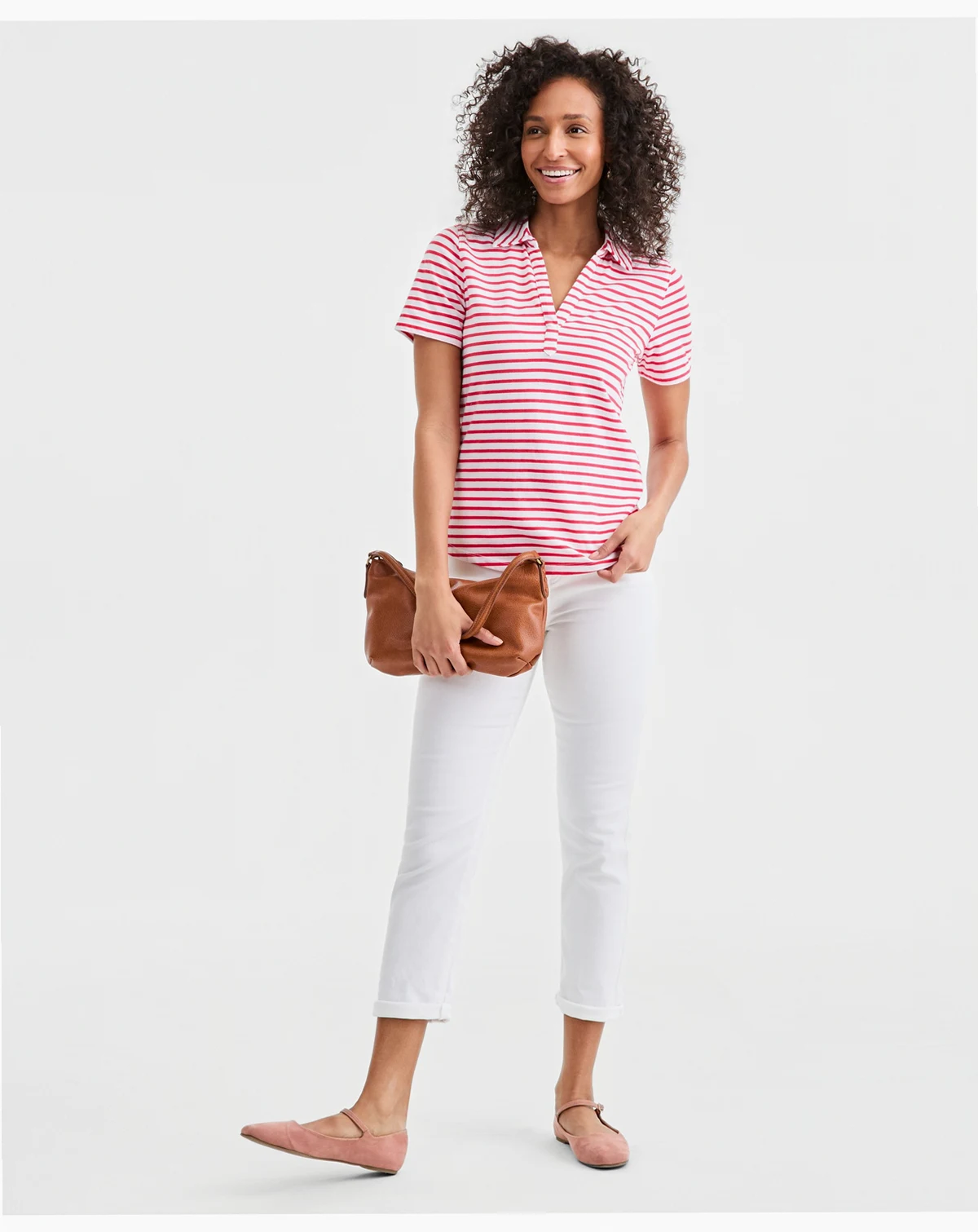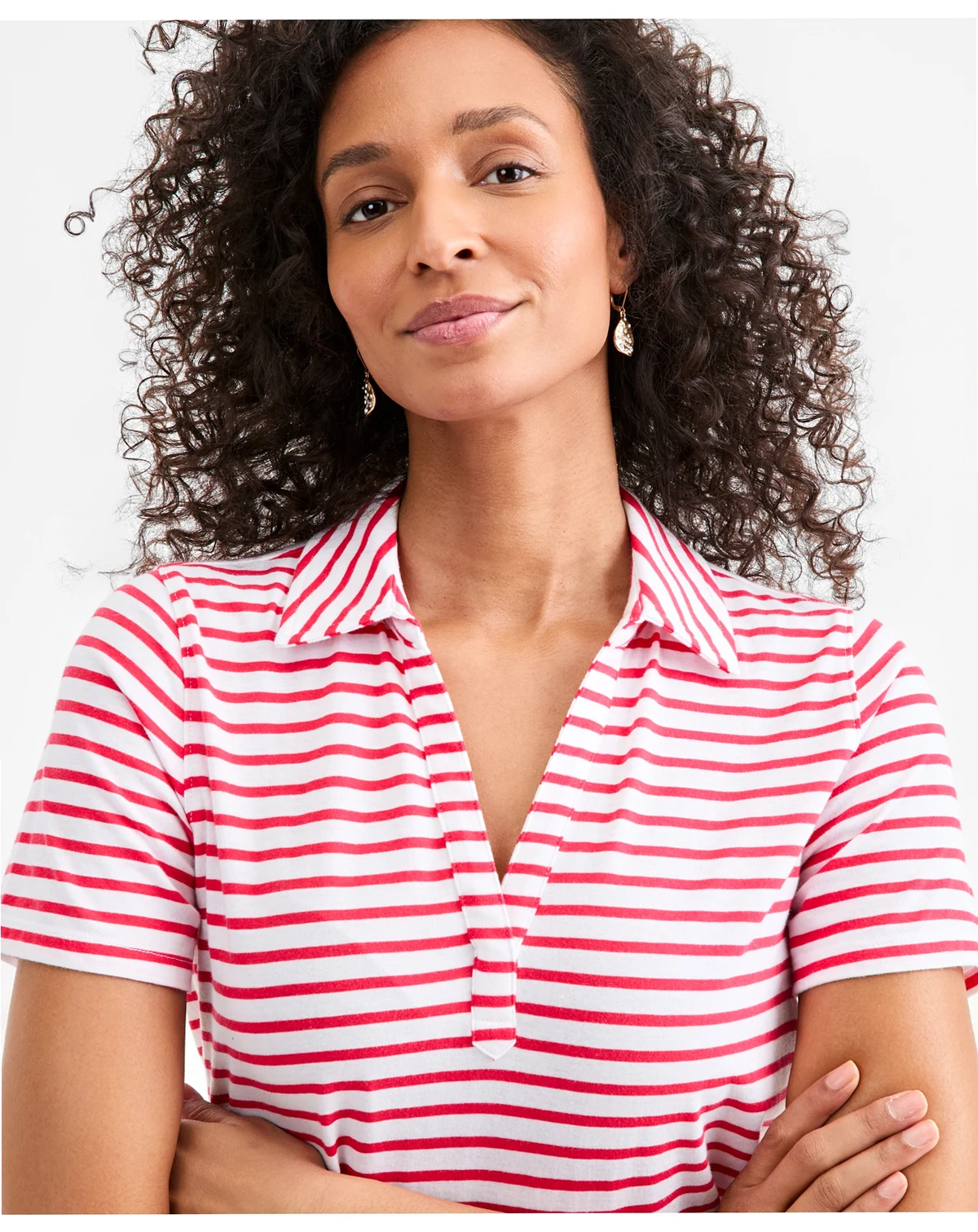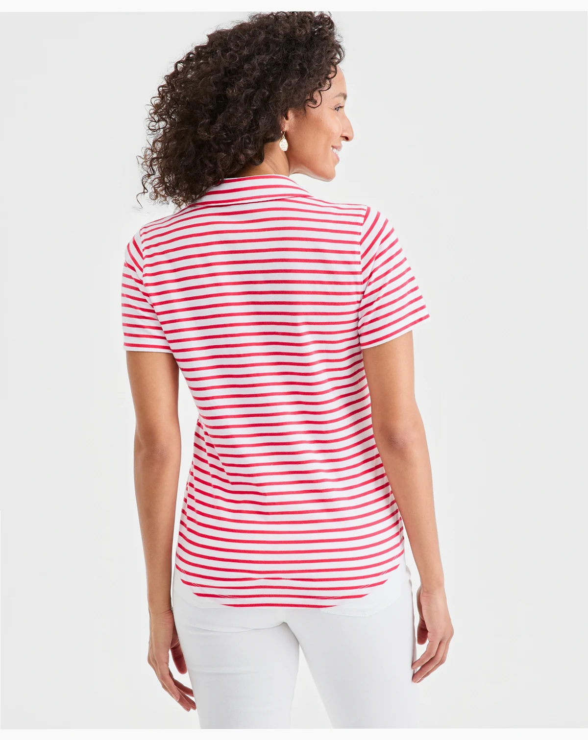 Bring an effortless charm to your regular wear with this Style & Co striped T-shirt. Polo-style Y-neckline and short sleeves offer a comfortable, relaxed fit, while the easy pull-on design makes a go-to choice for casual days.