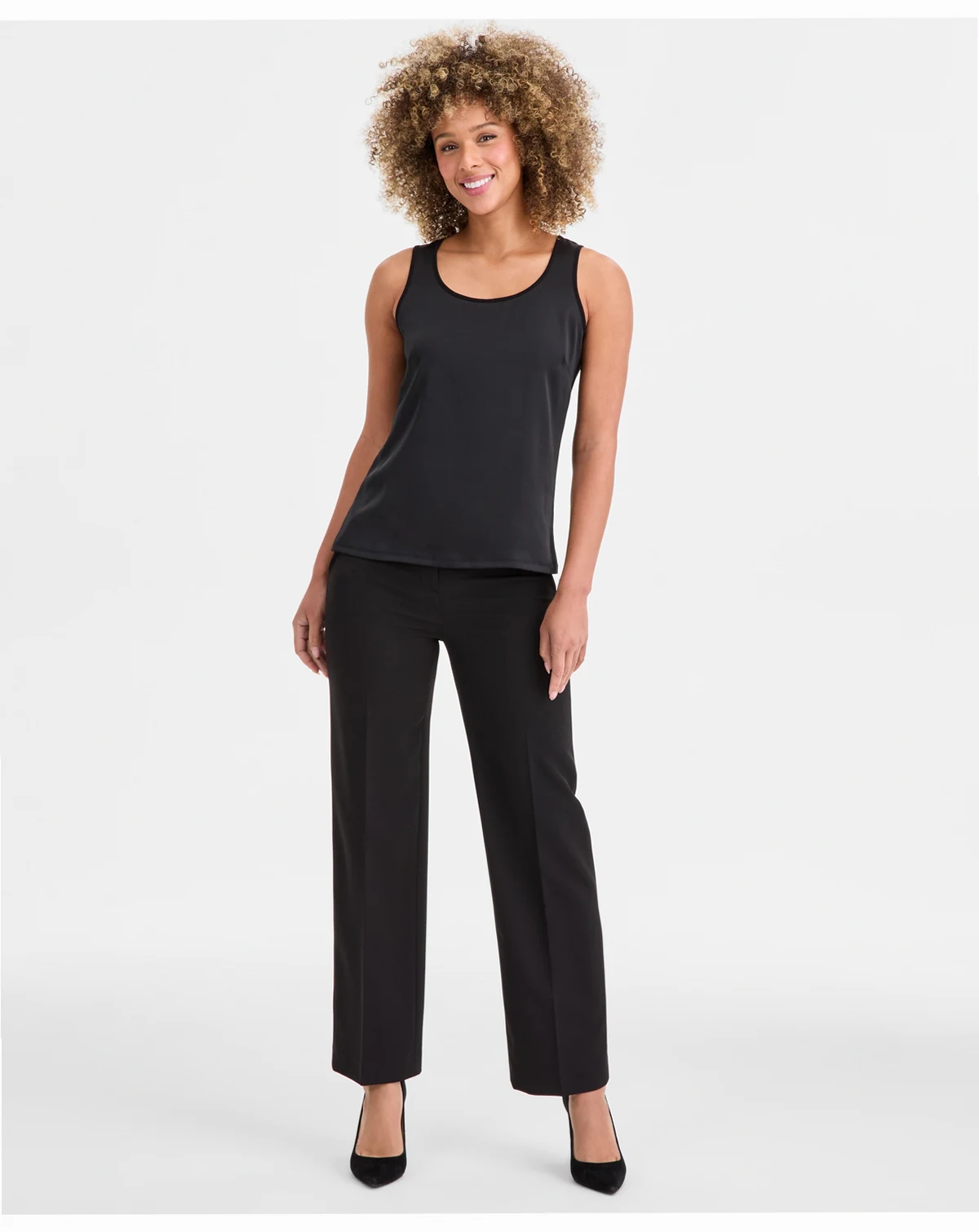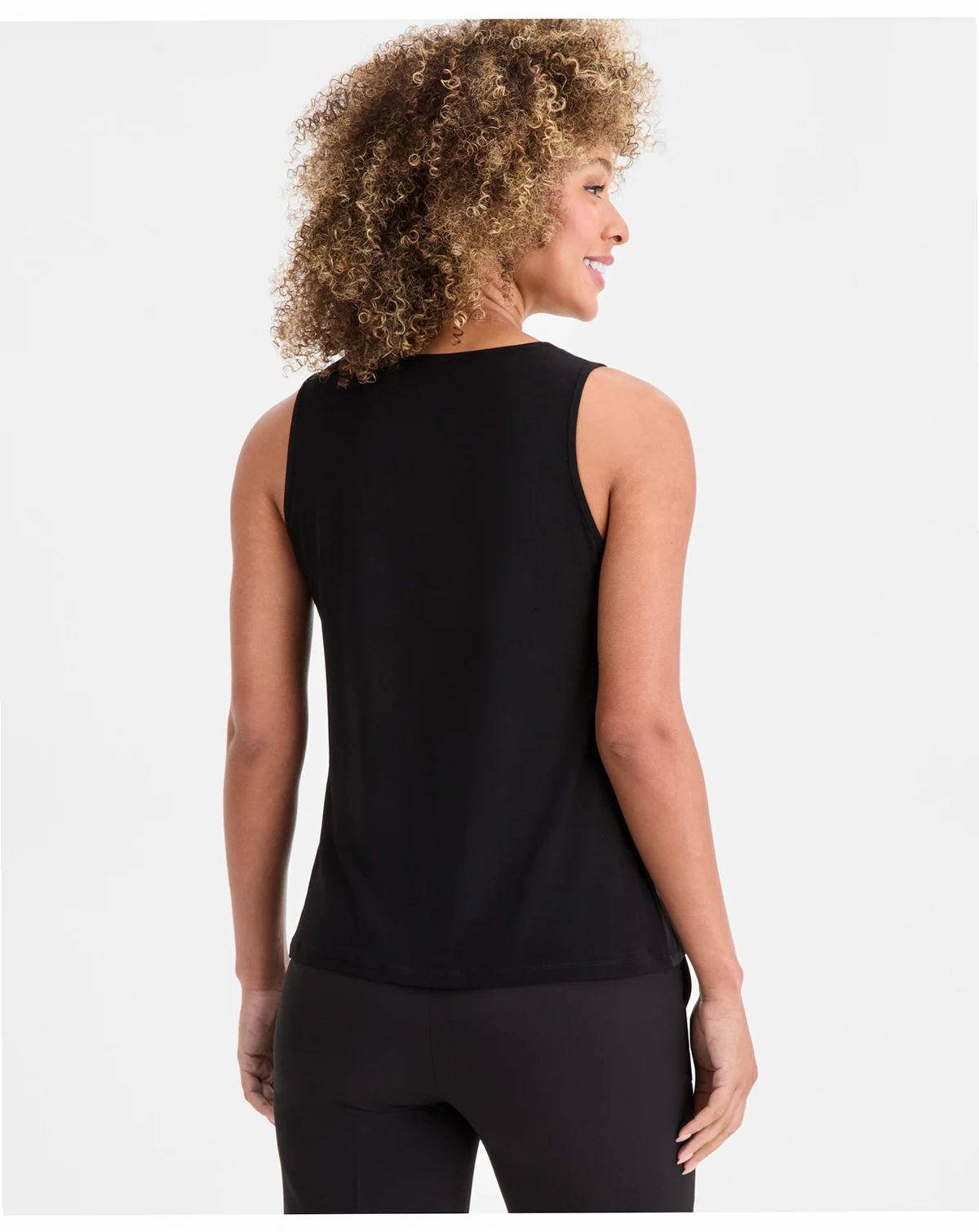 Anne Klein adds subtle interest to this versatile tank top with a tone-on-tone mixed-media design.