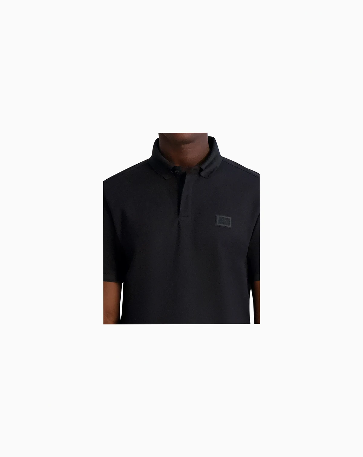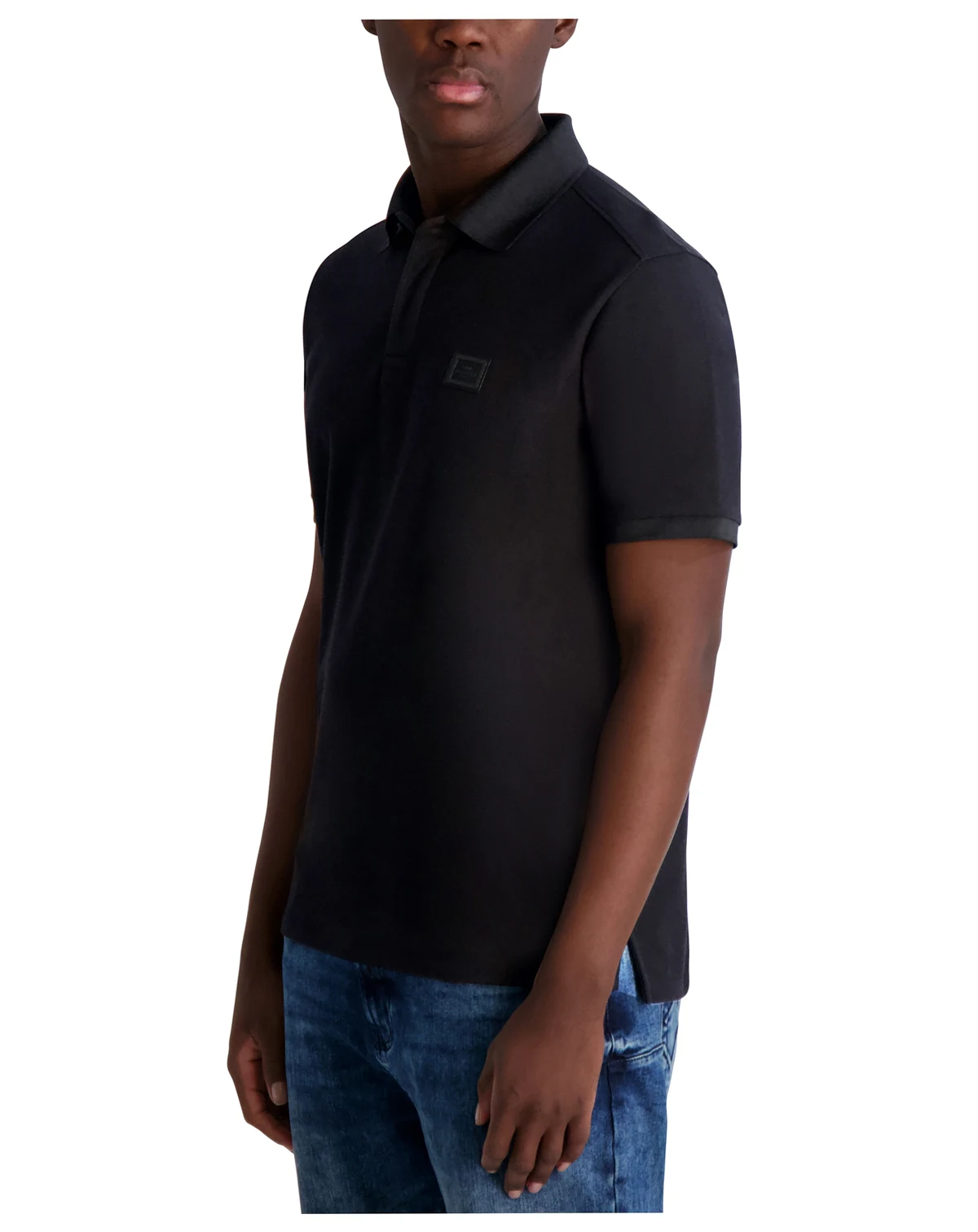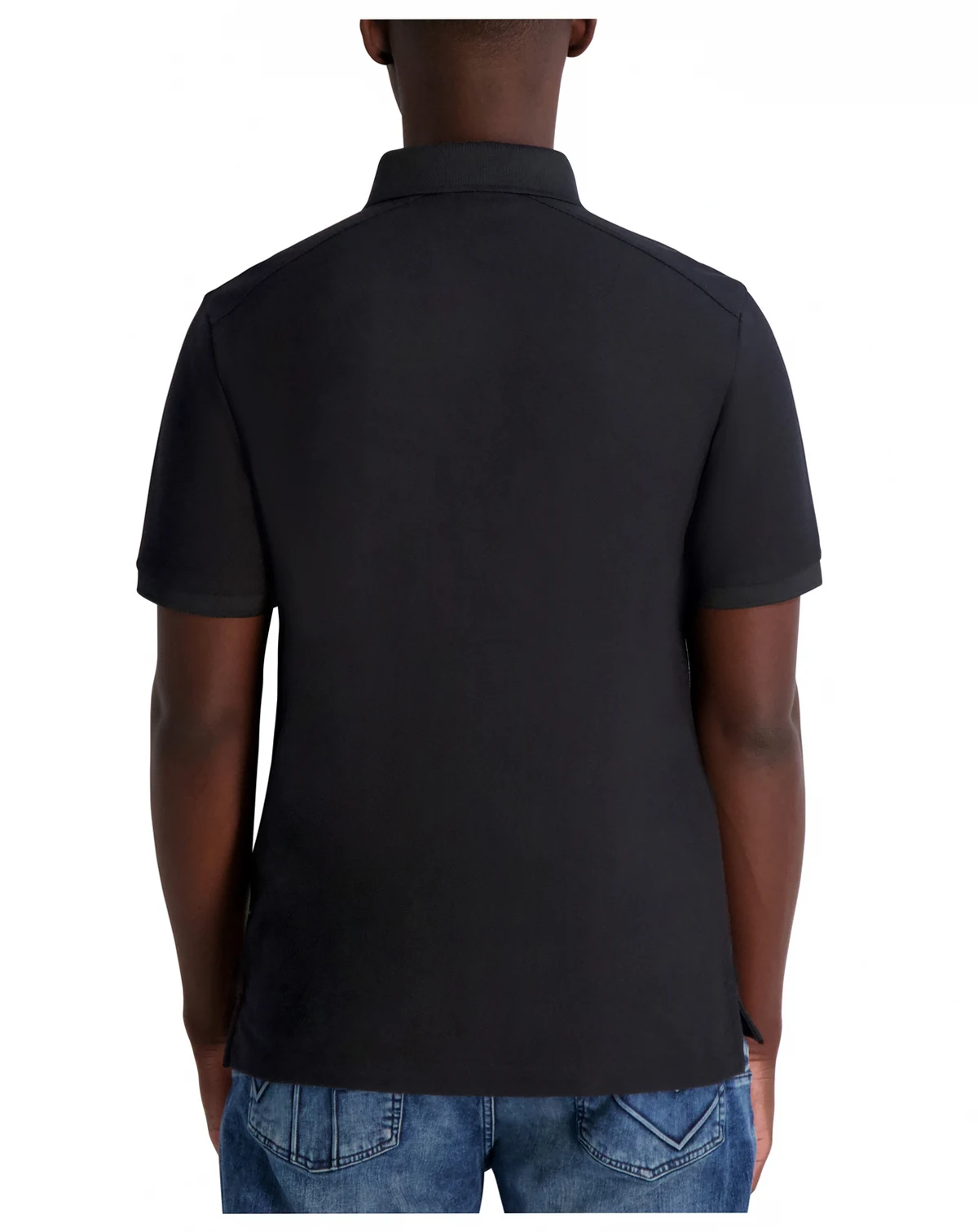 This signature no-frills polo shirt from Karl Lagerfeld Paris is clean, simple and offers a timeless all-black look for any casual occasion.