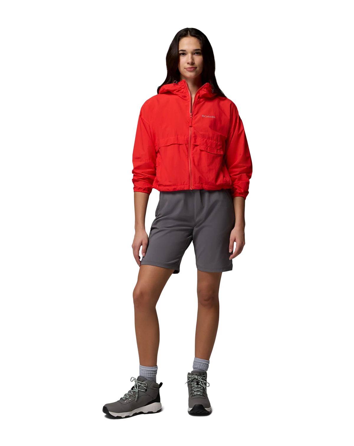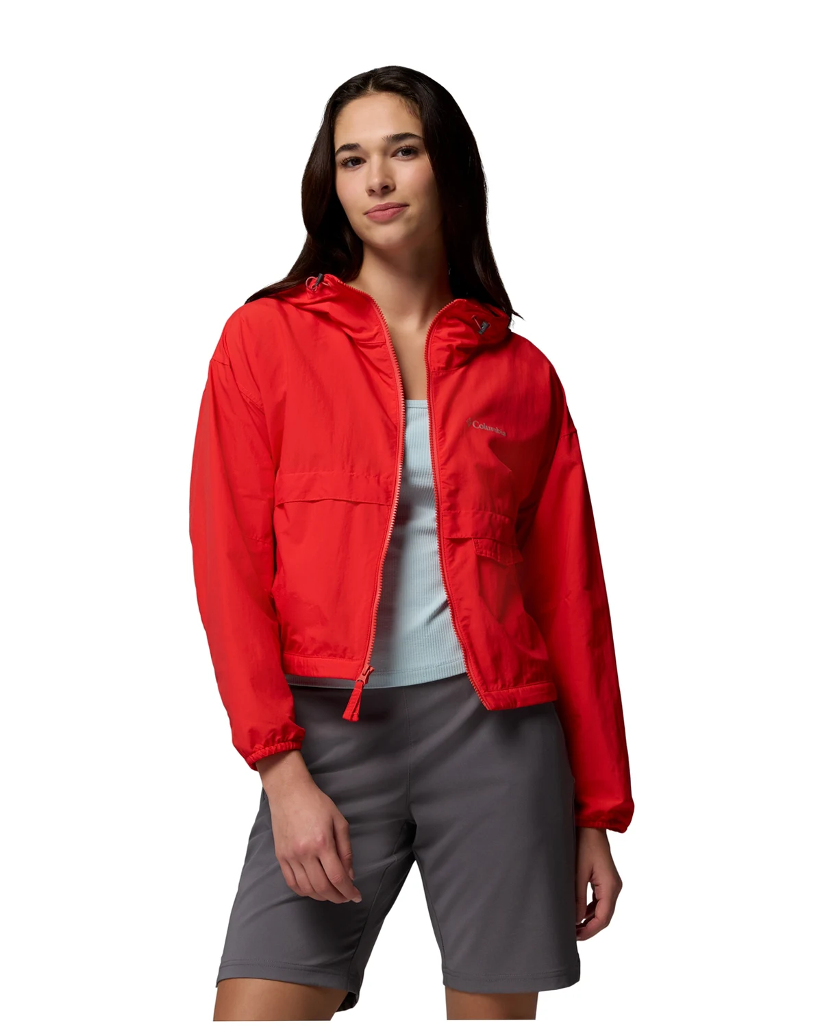 Stay comfortably protected while keeping your look modern with this Columbia cropped windbreaker jacket, designed with UPF 50 sun protection and stain- and water-repellent fabric. A vented construction, adjustable hem, and a handy stash pocket add breathability and practical functionality for everyday wear.