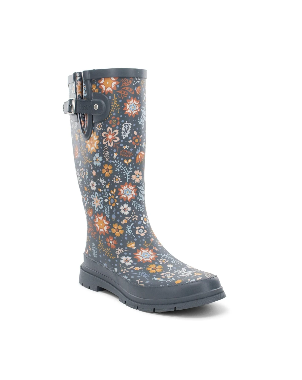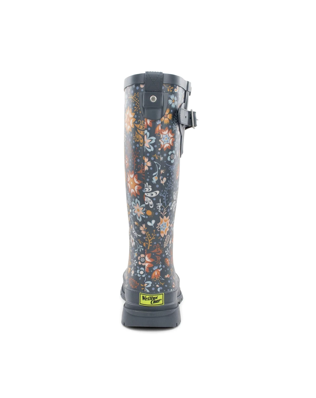 Step into rainy days with the cheerful Garden Play Tall Rain Boot by Western Chief. Made with waterproof high-quality rubber, these boots feature a vibrant garden-inspired print that adds charm to any downpour. Designed with comfort and function in mind, the soft polyester/cotton lining and removable EVA insole provide all-day wearability. The tall silhouette includes an adjustable buckle and side gusset for a flexible calf fit, while the rugged rubber lug outsole delivers dependable traction on wet or muddy surfaces.