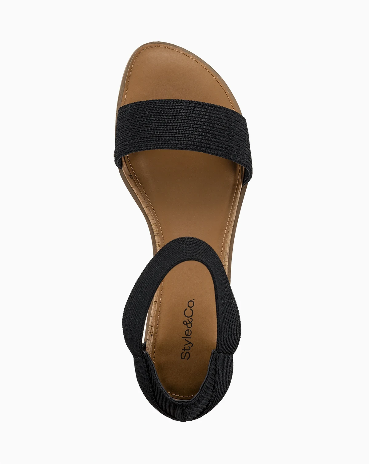 Relaxed and versatile, these Style & Co sandals feature a wedge heel and round toe for balanced style and everyday wear. The cushioned insoles and slip-on style add comfort and make it easy to put on and take off.