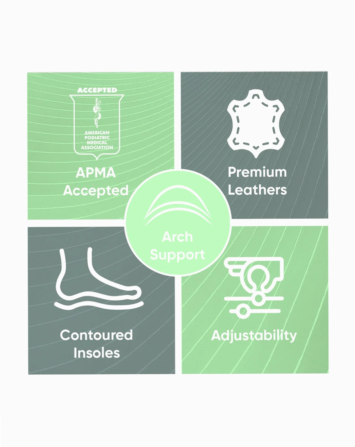 Sweet and sophisticated, the Missy sandal pairs perfectly with everything from casual to dressy outfits. Made from premium leather, it's designed in a simple style with subtle textured detailing and a chic, open-toe design. The sturdy built-in arch support and contoured insoles mold to your feet to create comfort in every stride. - This style has been accepted by the american podiatric medical association which recognizes shoes that promote good foot health - hook and loop strap closure - contoured insoles - arch support