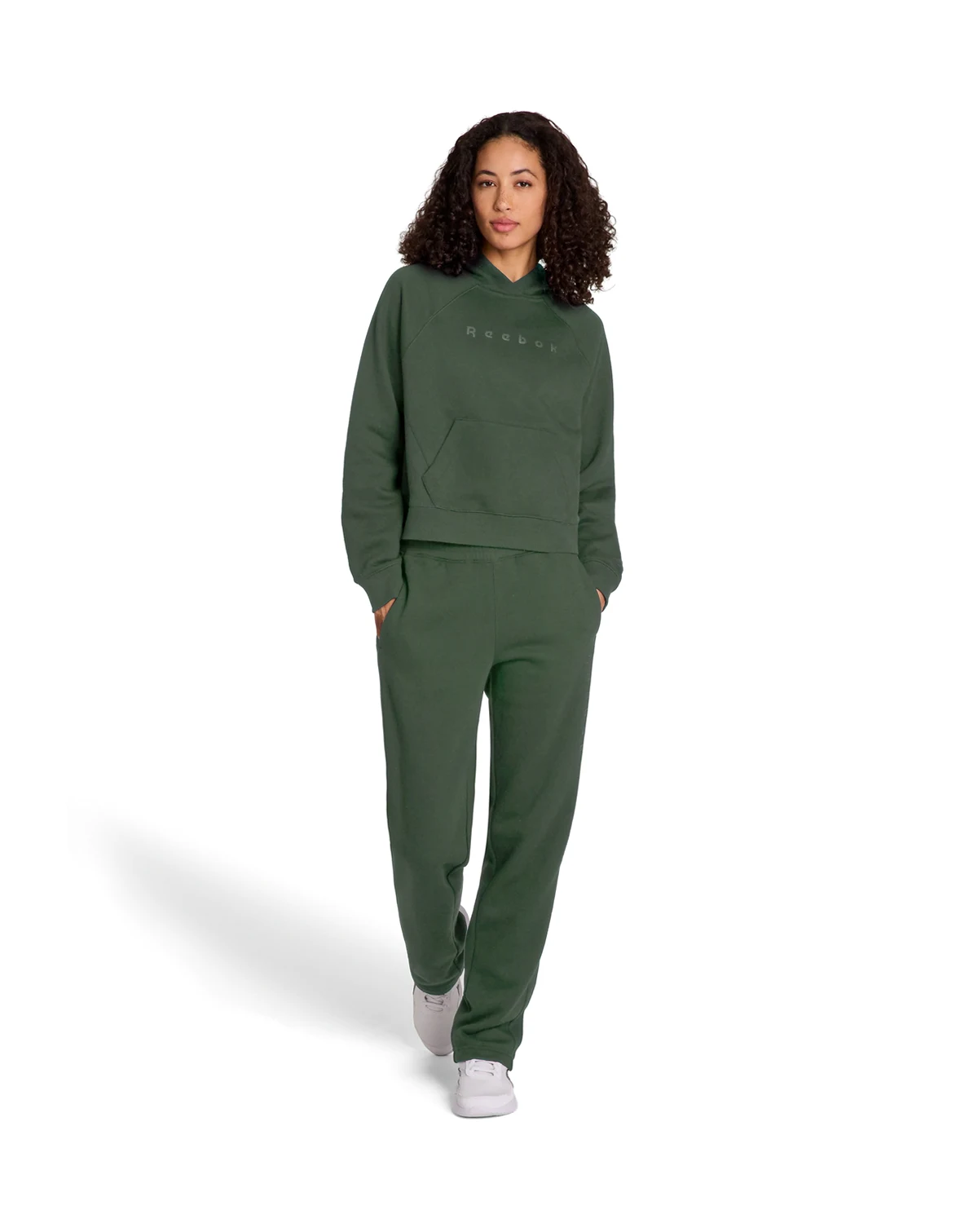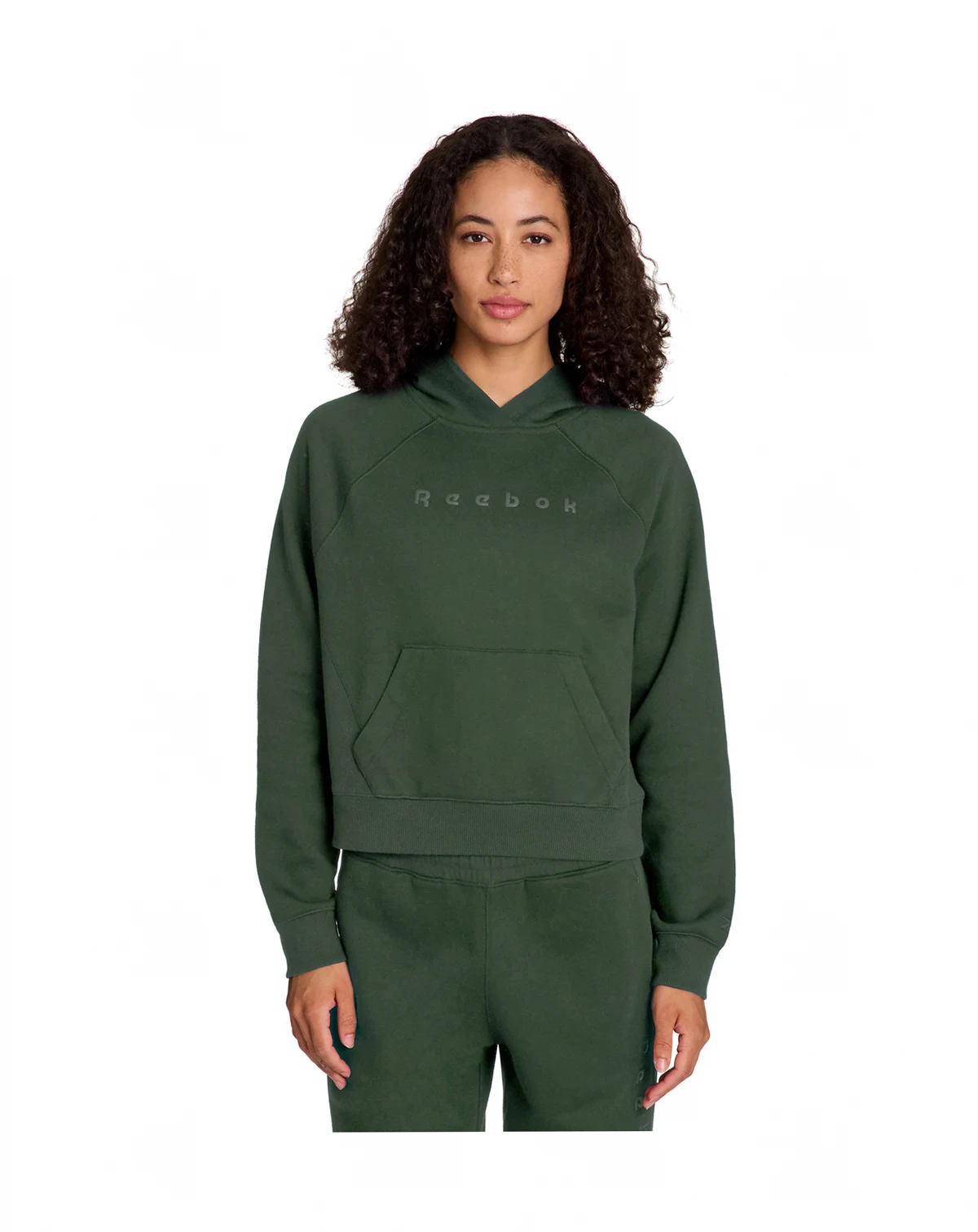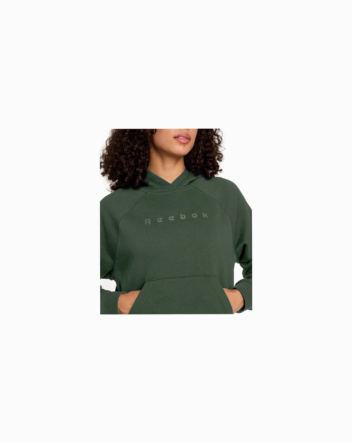 Stay cozy and on-trend in this cropped hoodie by Reebok. It comes designed with long sleeves for added warmth and a relaxed fit that moves with you. The kangaroo pocket offers both convenience and comfort, giving you a spot to keep essentials close or simply rest your hands.