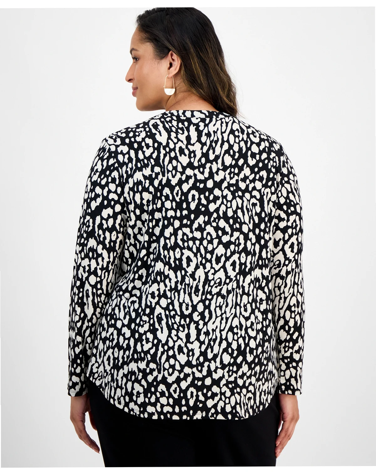 Command attention in this plus size long sleeve top from JM Collection, featuring a chic zipper closure at the chest for a touch of modern edge and versatile style.
