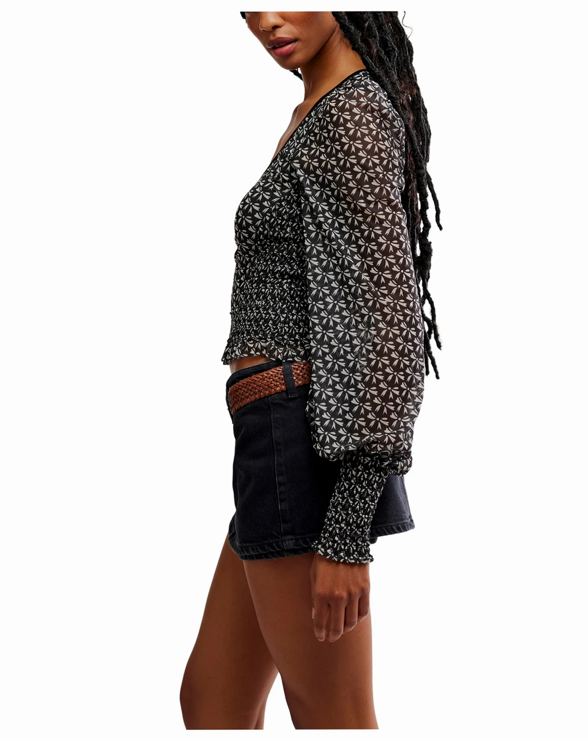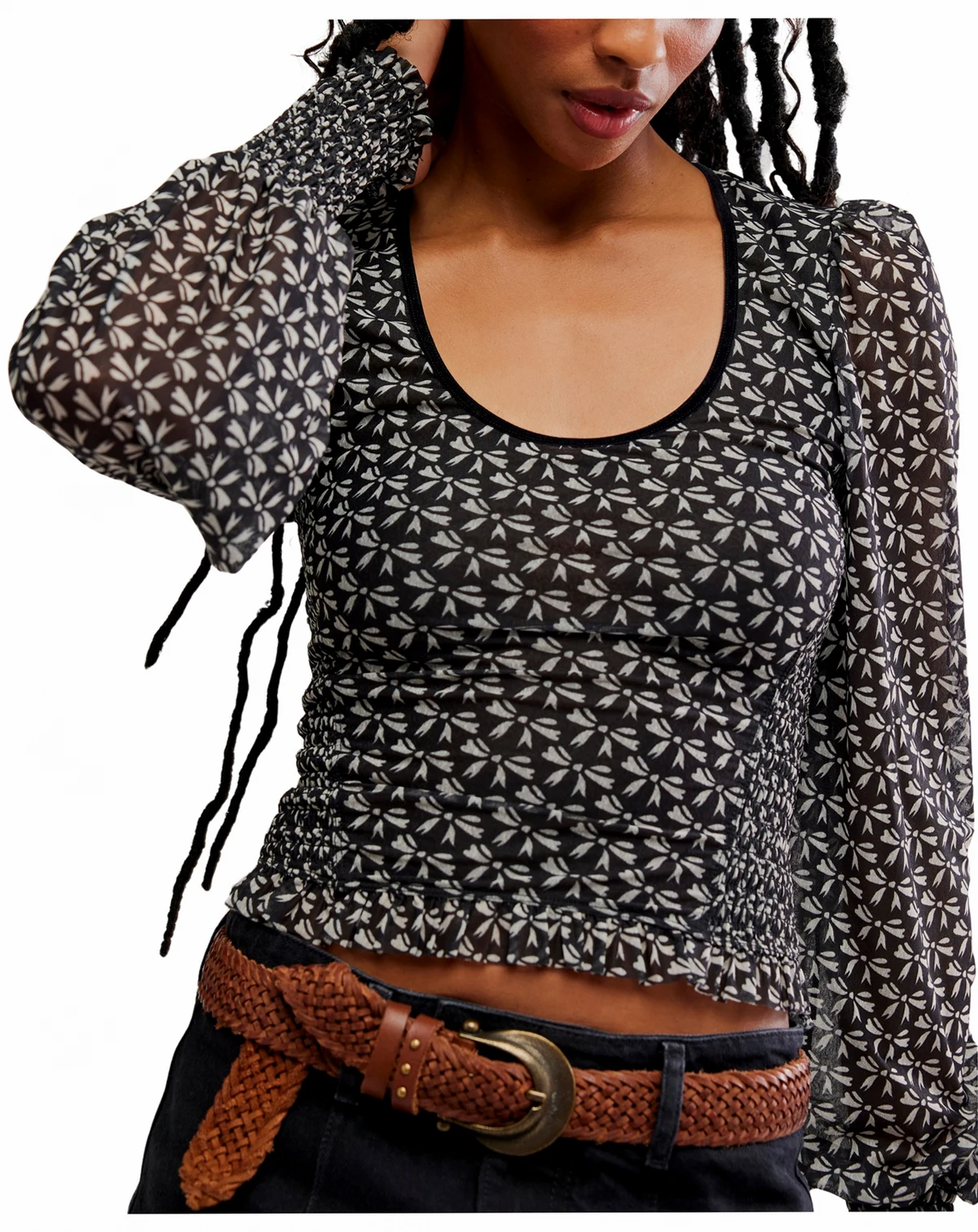 Incorporating a bow-like pattern throughout, this lightweight knit top from Free People features sheer puff sleeves that tighten at the wrist. A scoop neckline and slight lettuce hem offer a feminine and delicate look. ABOUT THE BRAND: If you love the laid-back charm of boho-chic apparel, you'll find a beautiful selection from Free People at Macy's that suits your style. From ultra-feminine dresses to cute tops, browse the collection of casual, hip designs.