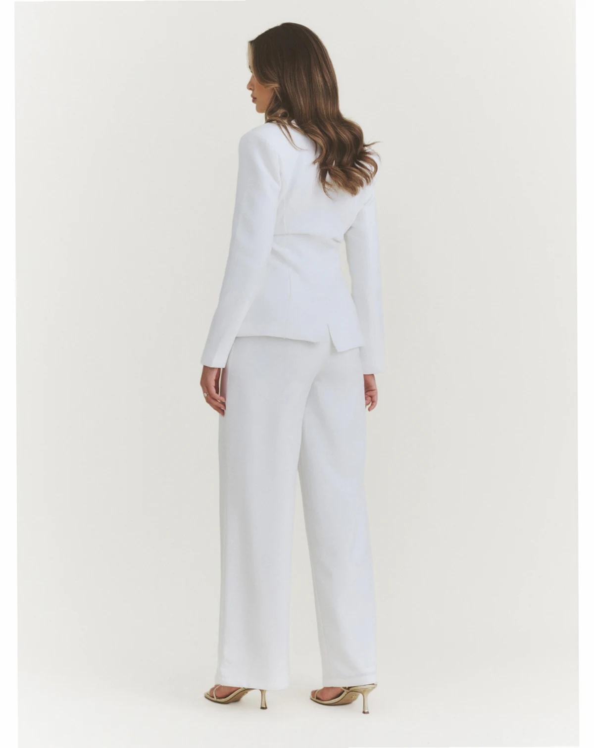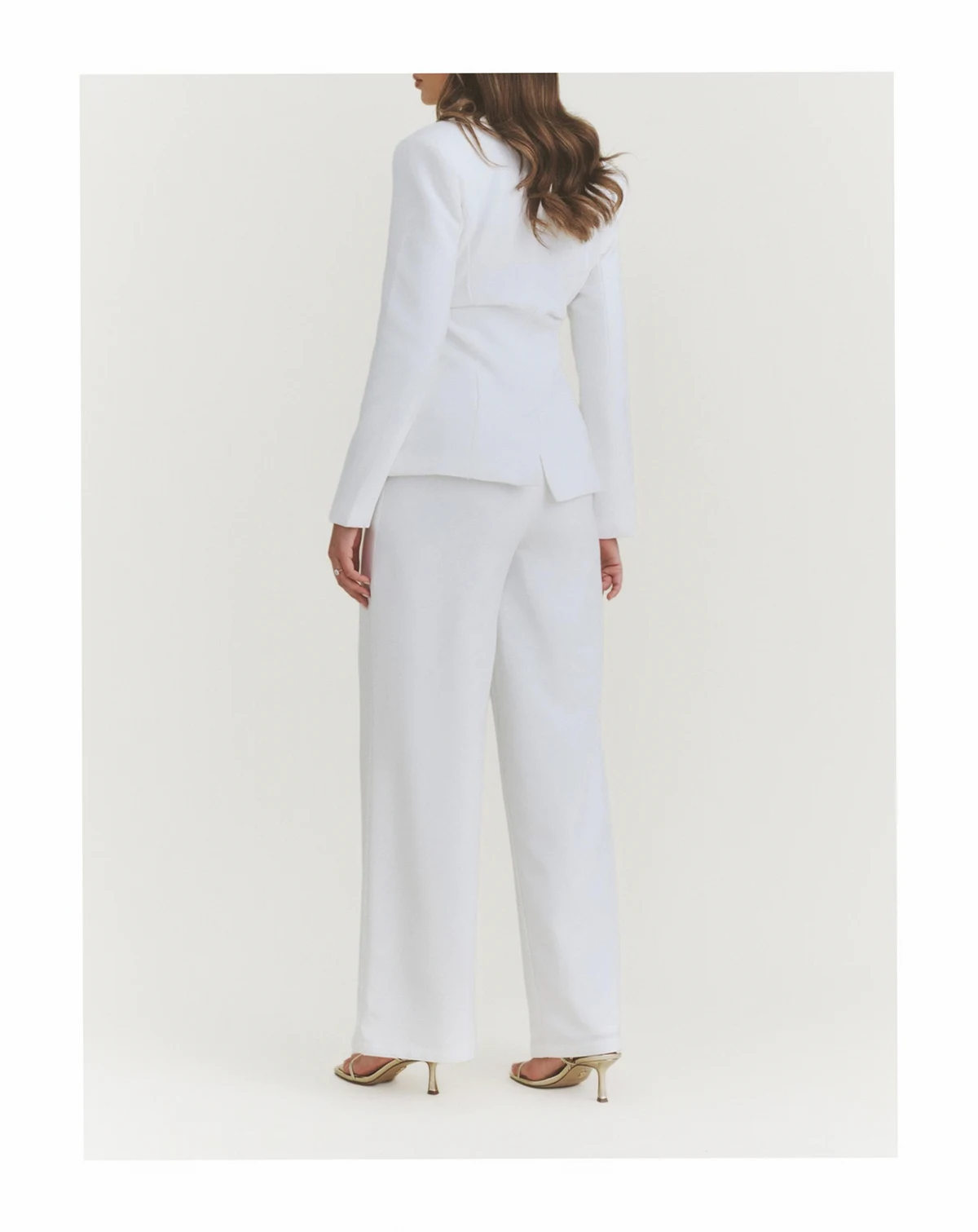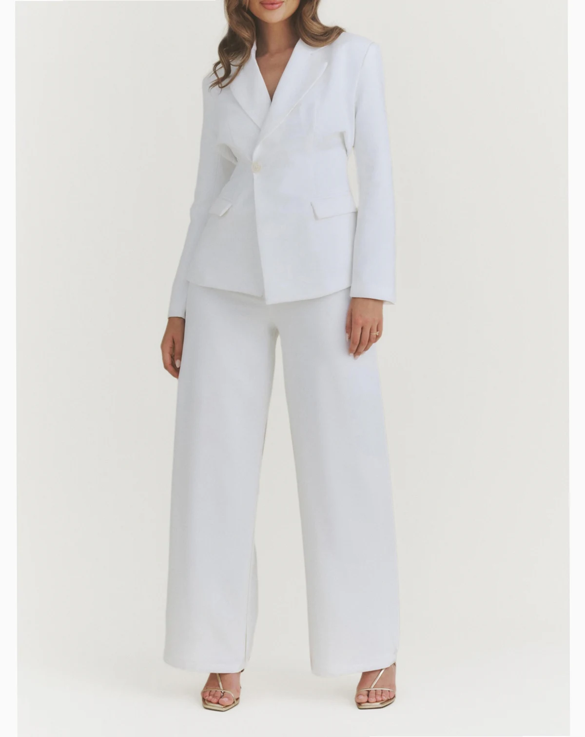 The BLAKE Tailored Wide Leg Pants are cut from a premium tailoring fabric with a flattering high waist and elongating leg. These pants are fully lined and have side pockets. A modern take on timeless tailoring - sleek, versatile, and effortlessly chic.