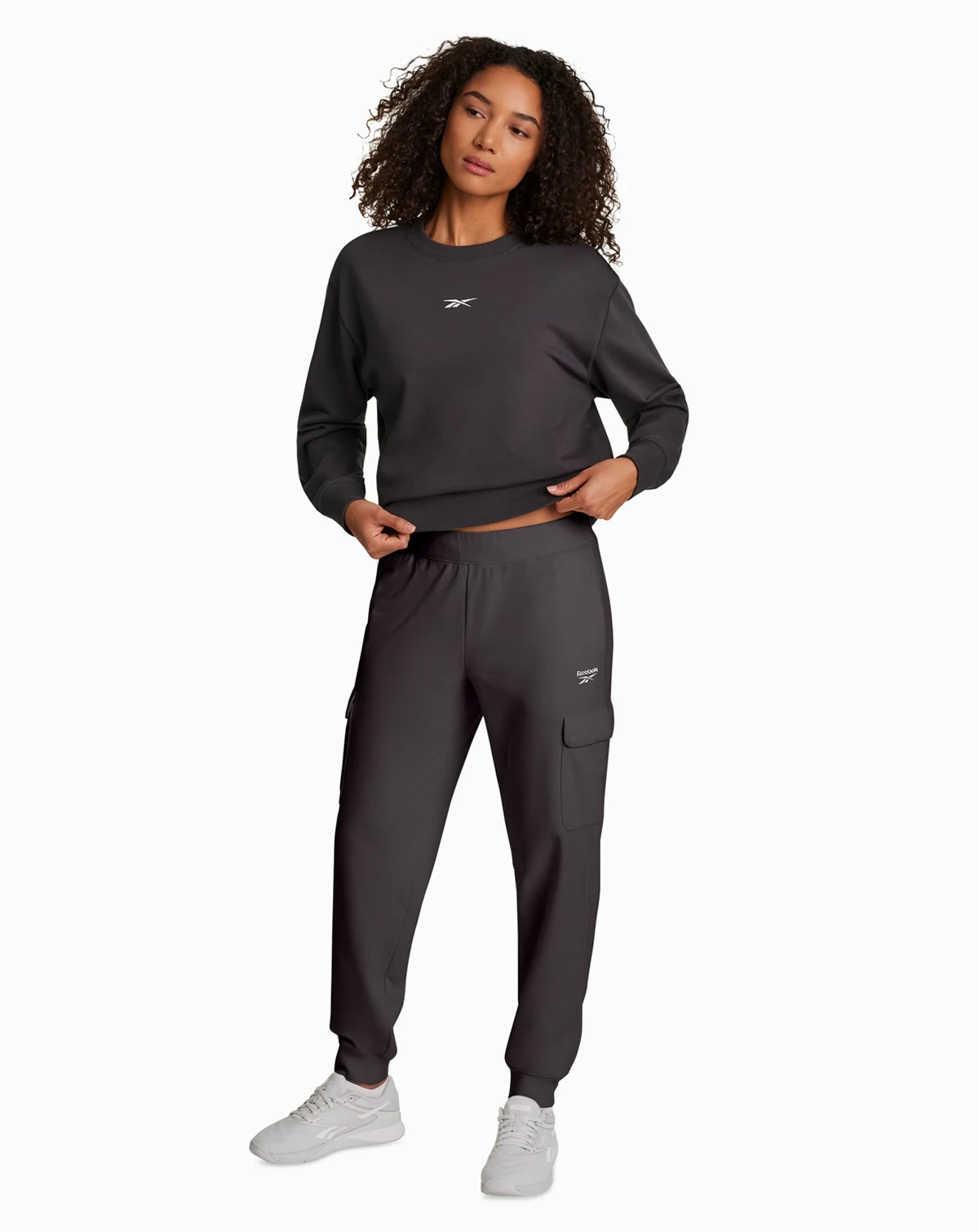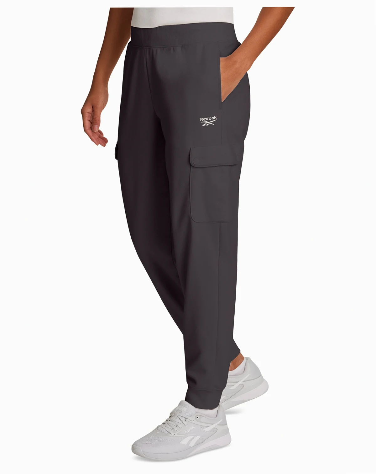 Blend utility and comfort in these Reebok joggers featuring dual-entry cargo pockets and a relaxed fit. An ankle-length design and pull-on closure make them perfect for daily wear.