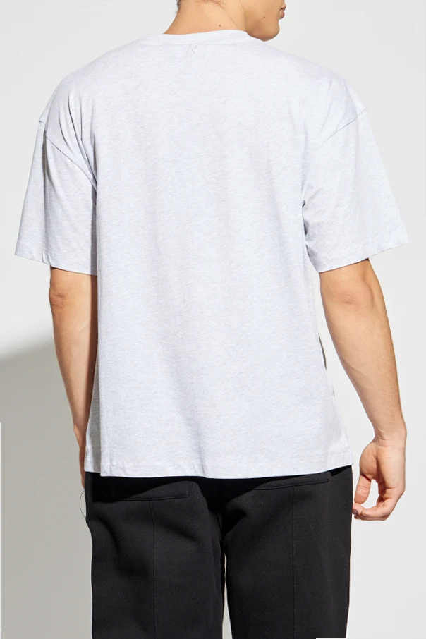 Evoke understated refinement with the Initial Oversize T-shirt by Represent . Crafted from exquisitely smooth, premium cotton, this shirt features a subtle gray mélange texture that imparts a sense of quiet sophistication. The silhouette is unmistakably oversize, draping elegantly across the shoulders and offering ample room with wide sleeves that fall gracefully to mid-bicep.