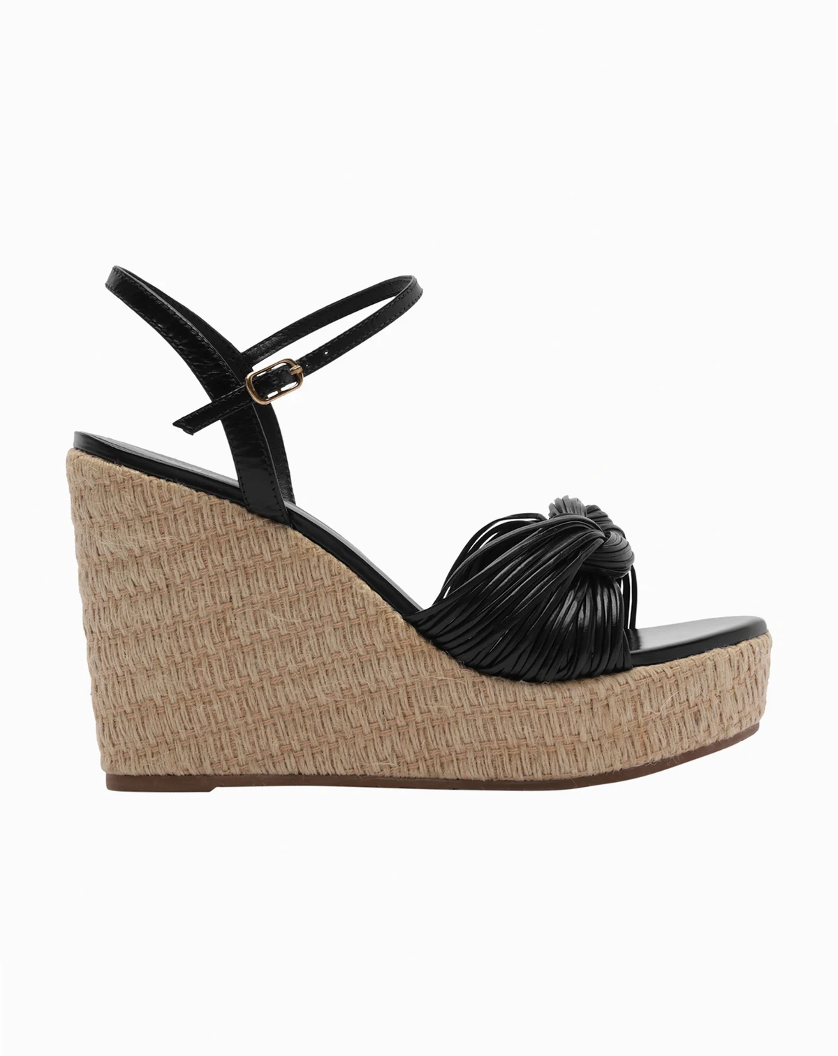 Meet the Charlotte Platform Wedge Sandal. With sculptural knotted straps and an ankle embrace, this sandal lifts you into moments that feel like magic. Every step is a love letter to confidence.