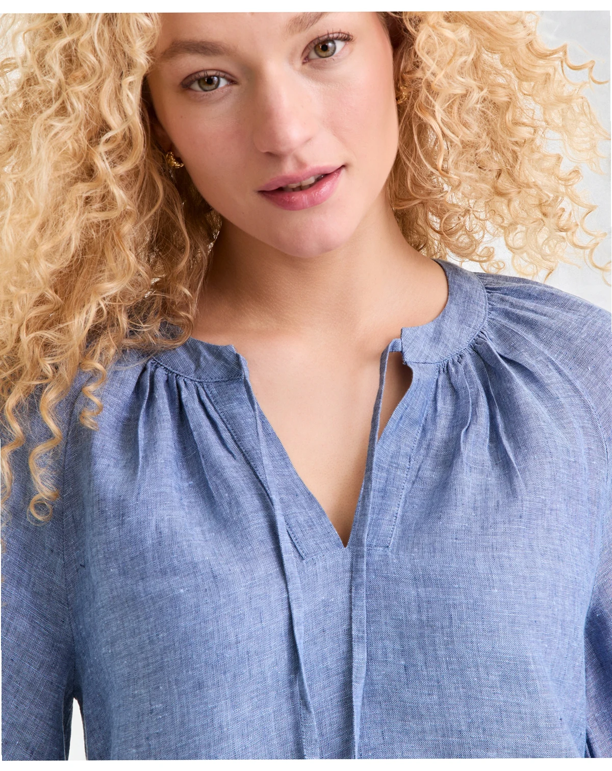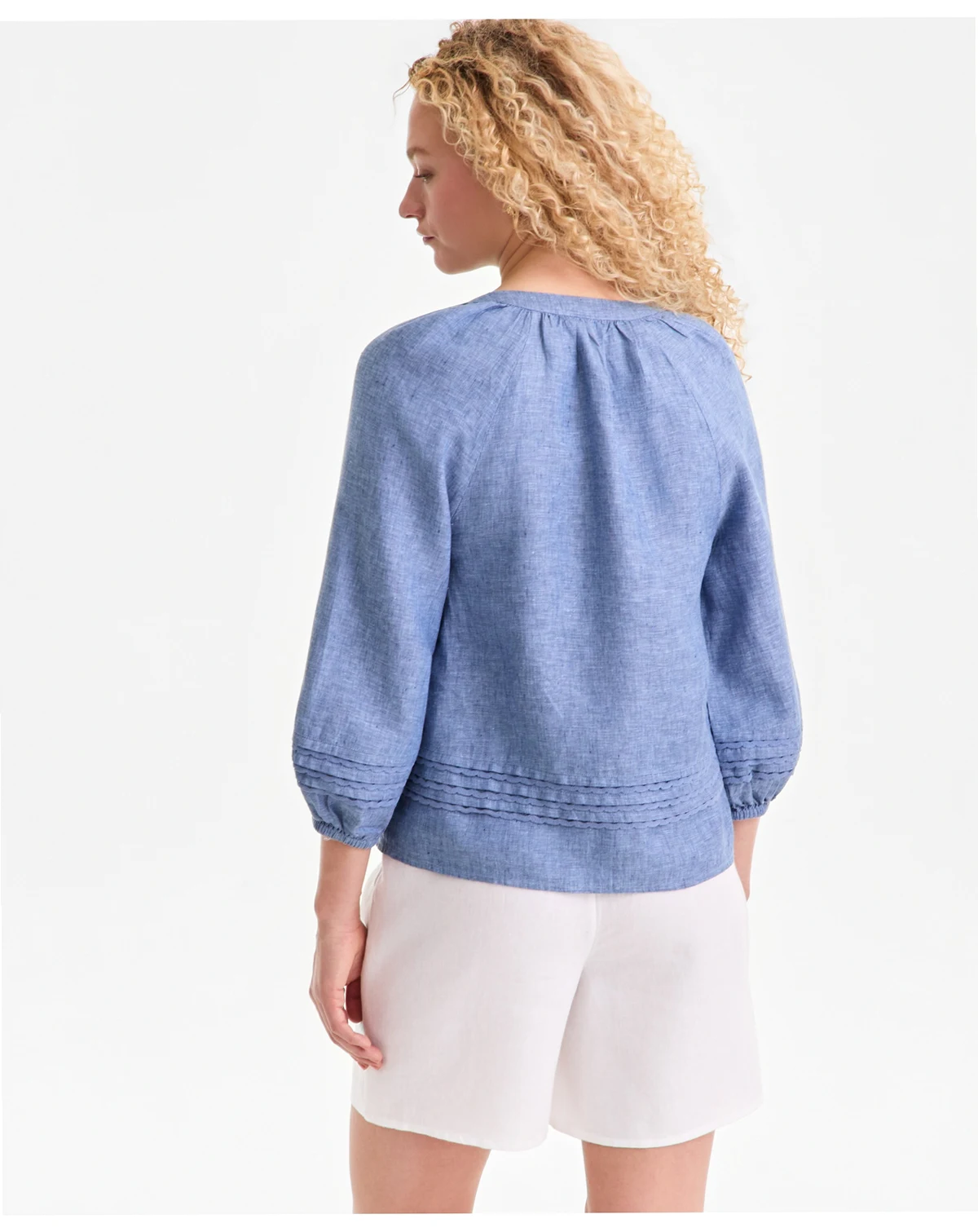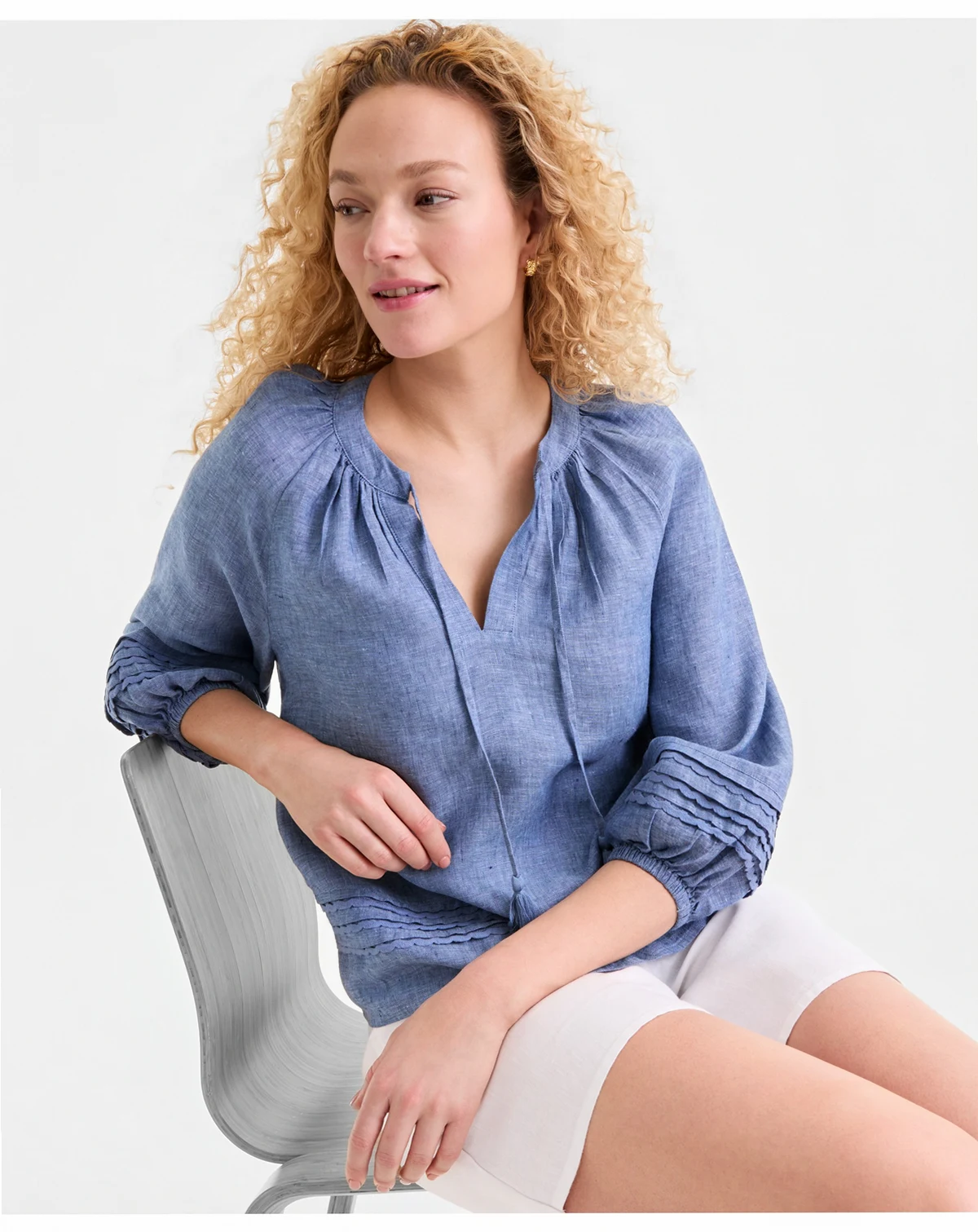 Women's 100% Linen Crochet-Trim Tie-Neck Top, Macy's Exclusive