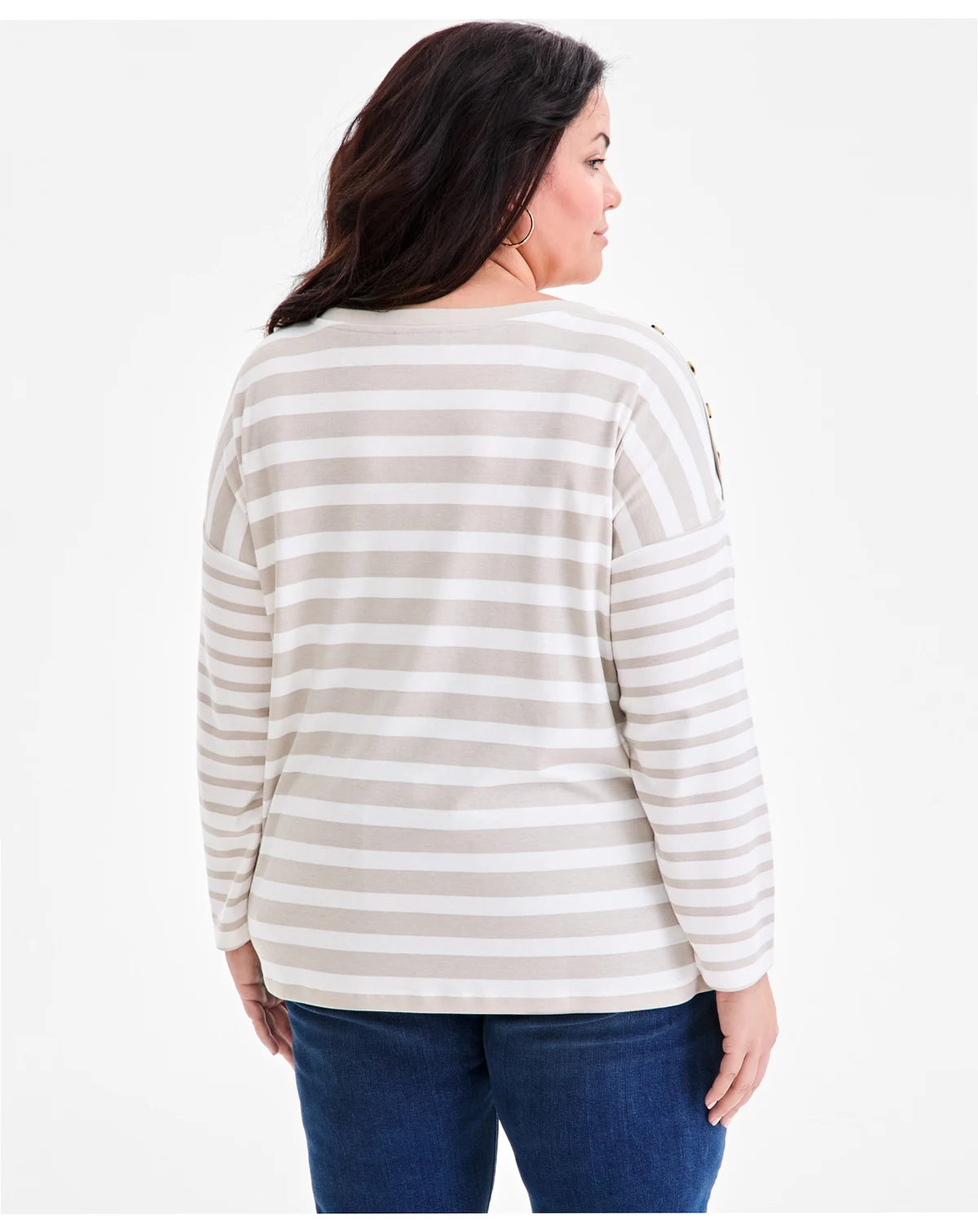 Two types of stripes combine in this Style & Co® plus size knit top that's smartly finished with button trim at the shoulders.