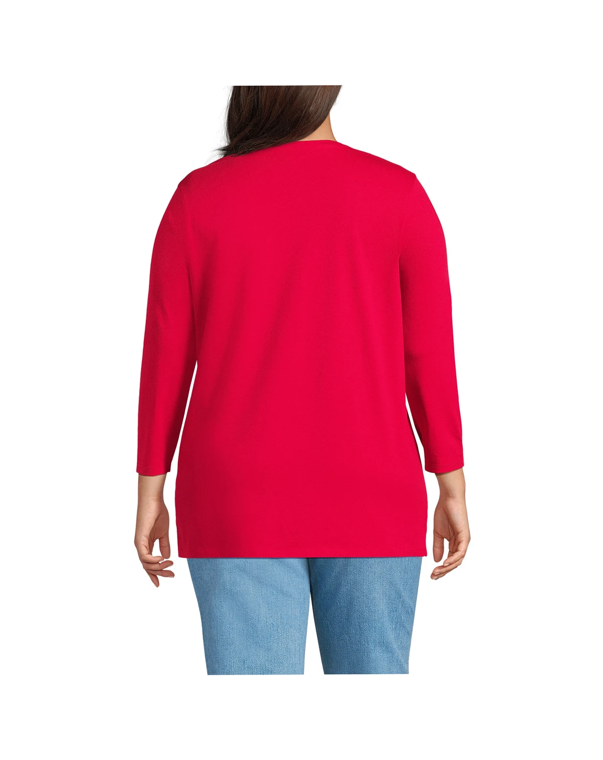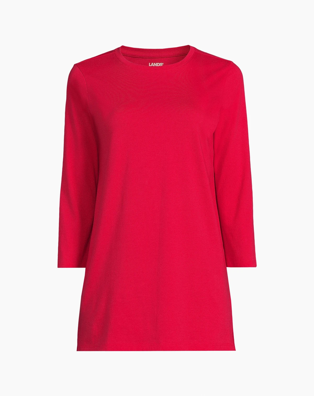 In need of a breathable super-soft and comfy layering tee to get you through the seasons? Look no further than the Lands End Women s ¾ Sleeve Supima Cotton Crewneck Tunic. Made from top-tier American grown cotton Supima is a longer and stronger fiber that resists shrinkage pilling and wrinkles. Ideal for layering underneath sweaters jackets sweatshirts blazers fleece and puffy winter coats you can wear this long tunic just about anywhere during any season.