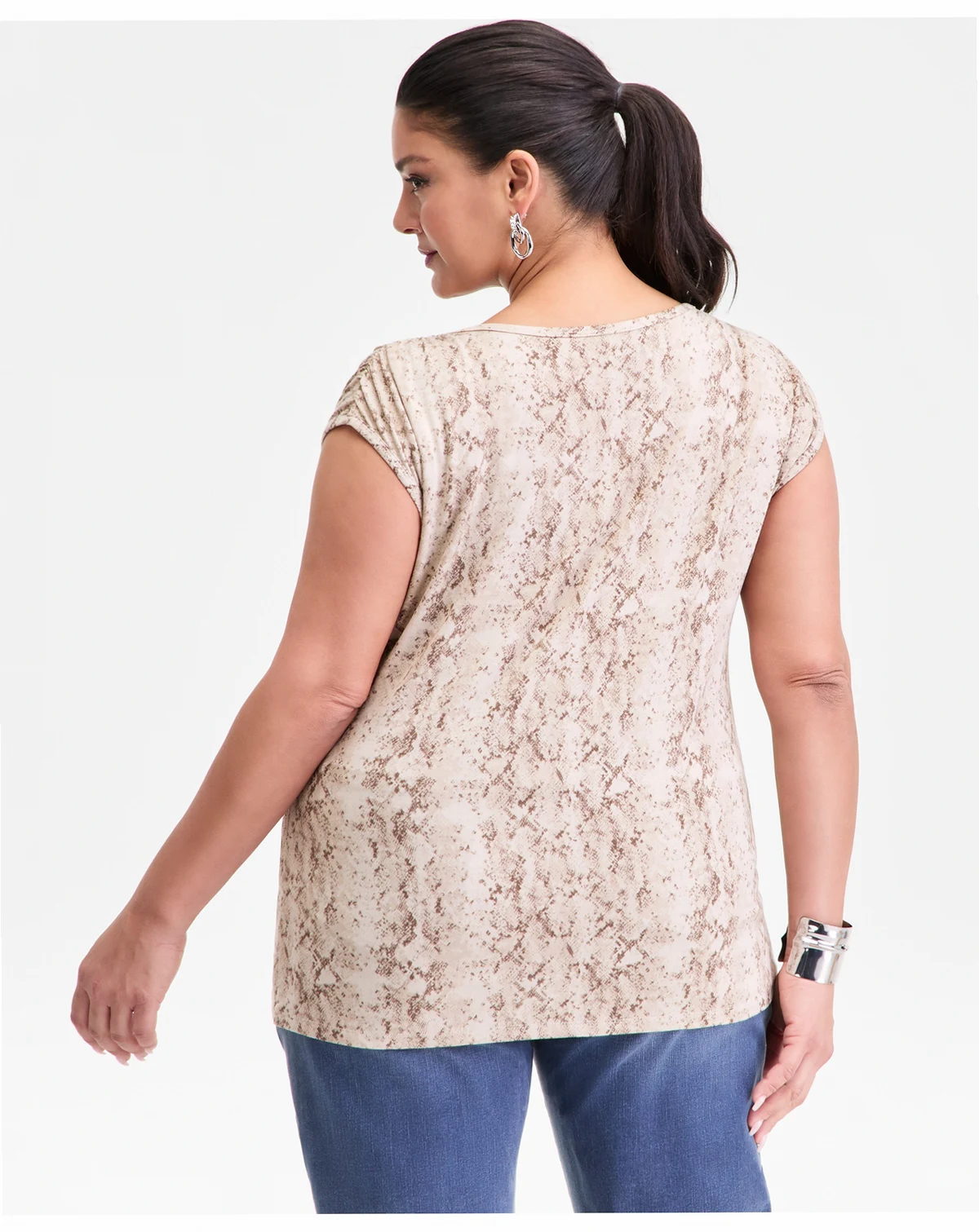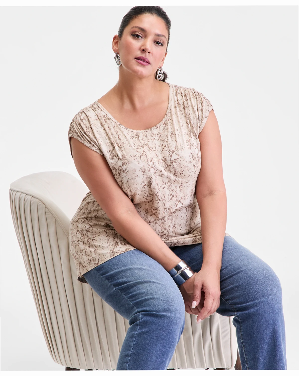 Plus Size Printed Gathered-Shoulder Tank, Macy's Exclusive