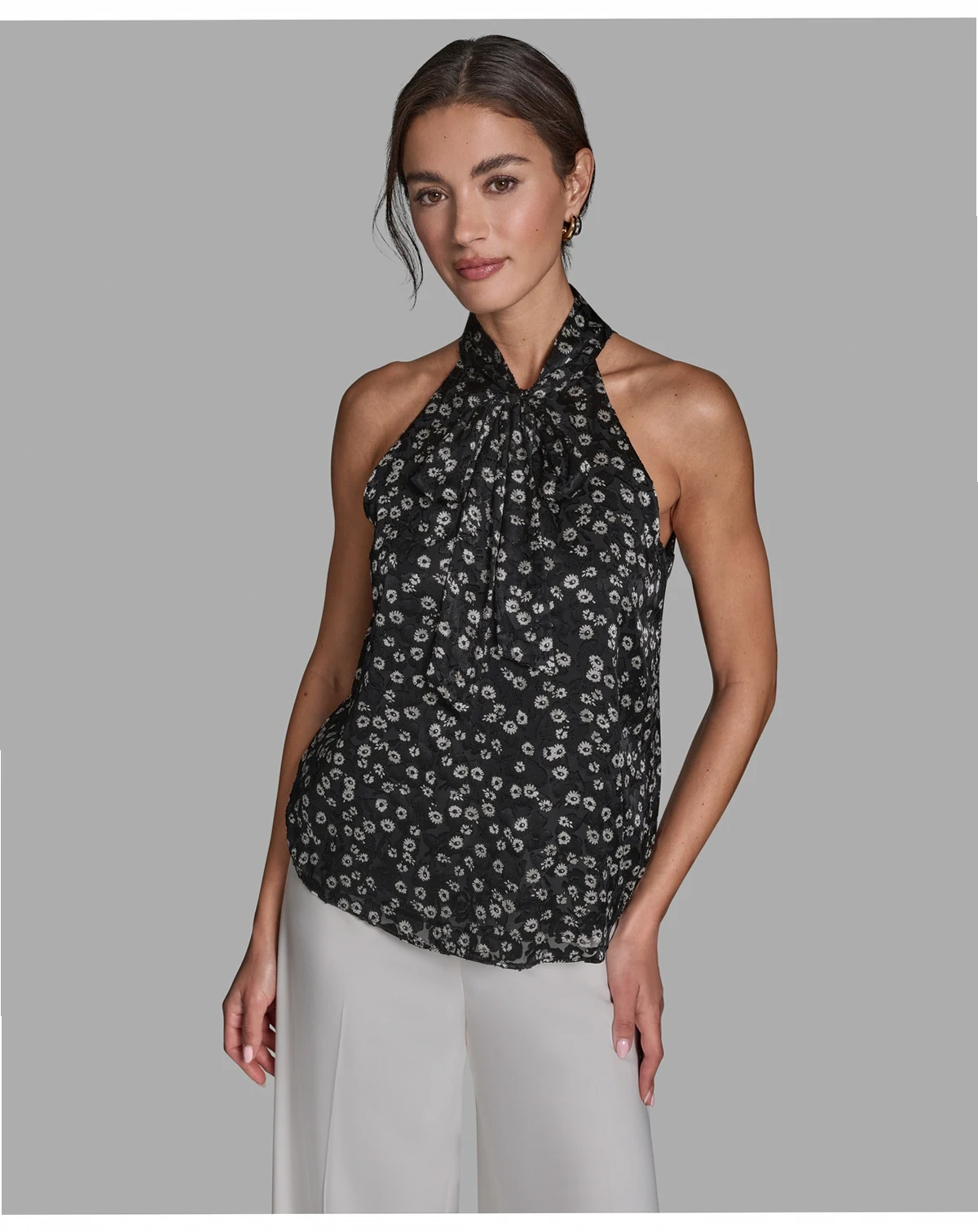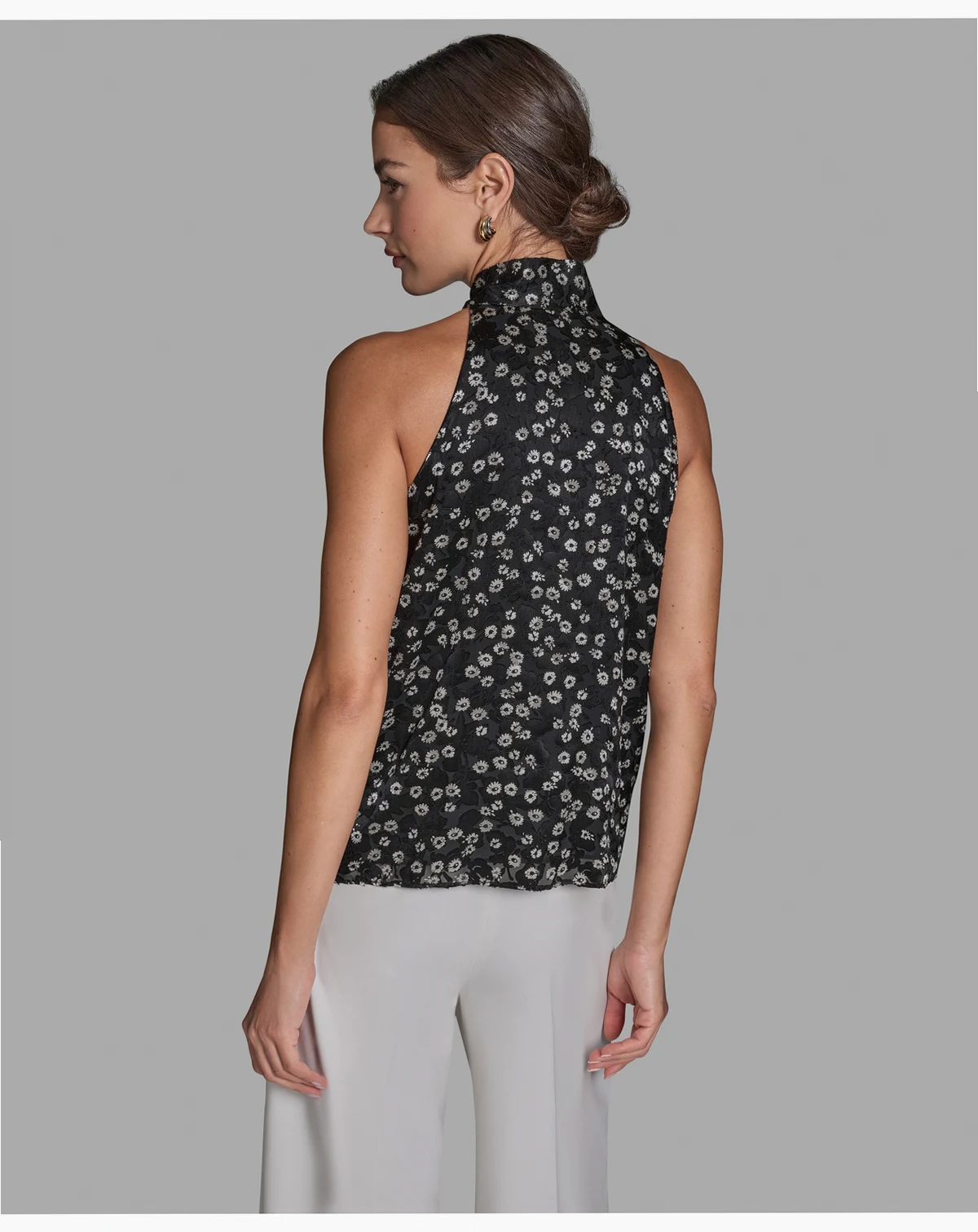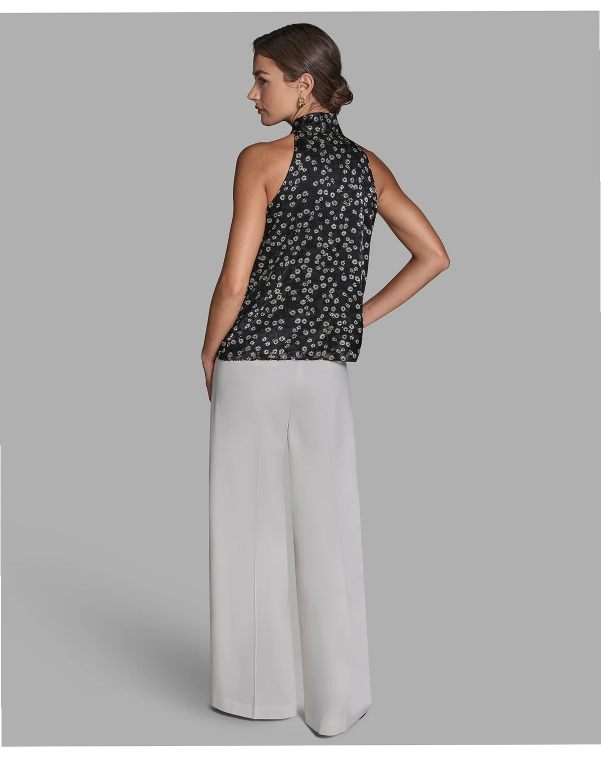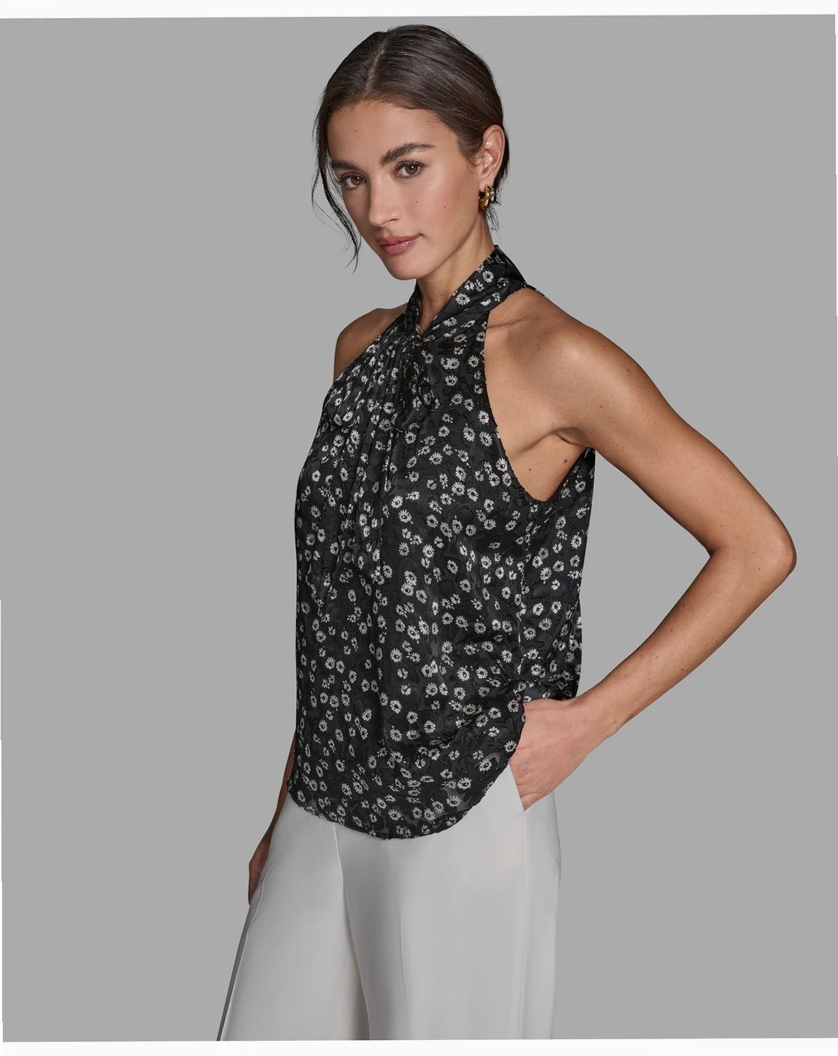 Delivering effortless elegance, this BCBG blouse is crafted from a blend of viscose and silk for a beautiful drape. The sleeveless tie neck design creates a versatile piece for professional or special occasions.