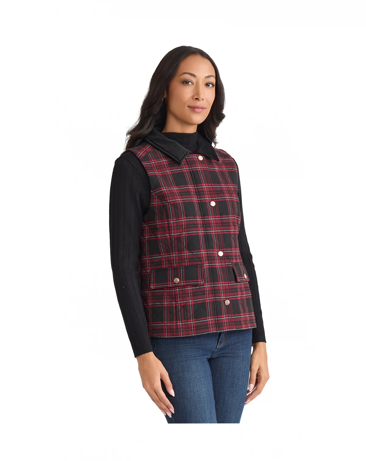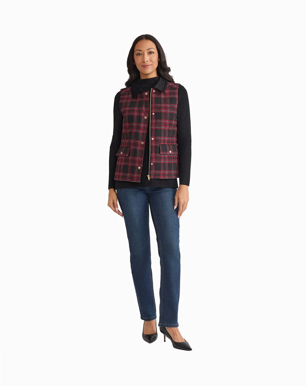 Add practical warmth when you head out with this Jones New York snap-front vest that sports hip pockets for quick storage. Snap fasteners make on-off transitions rapid and suit brisk weather.
