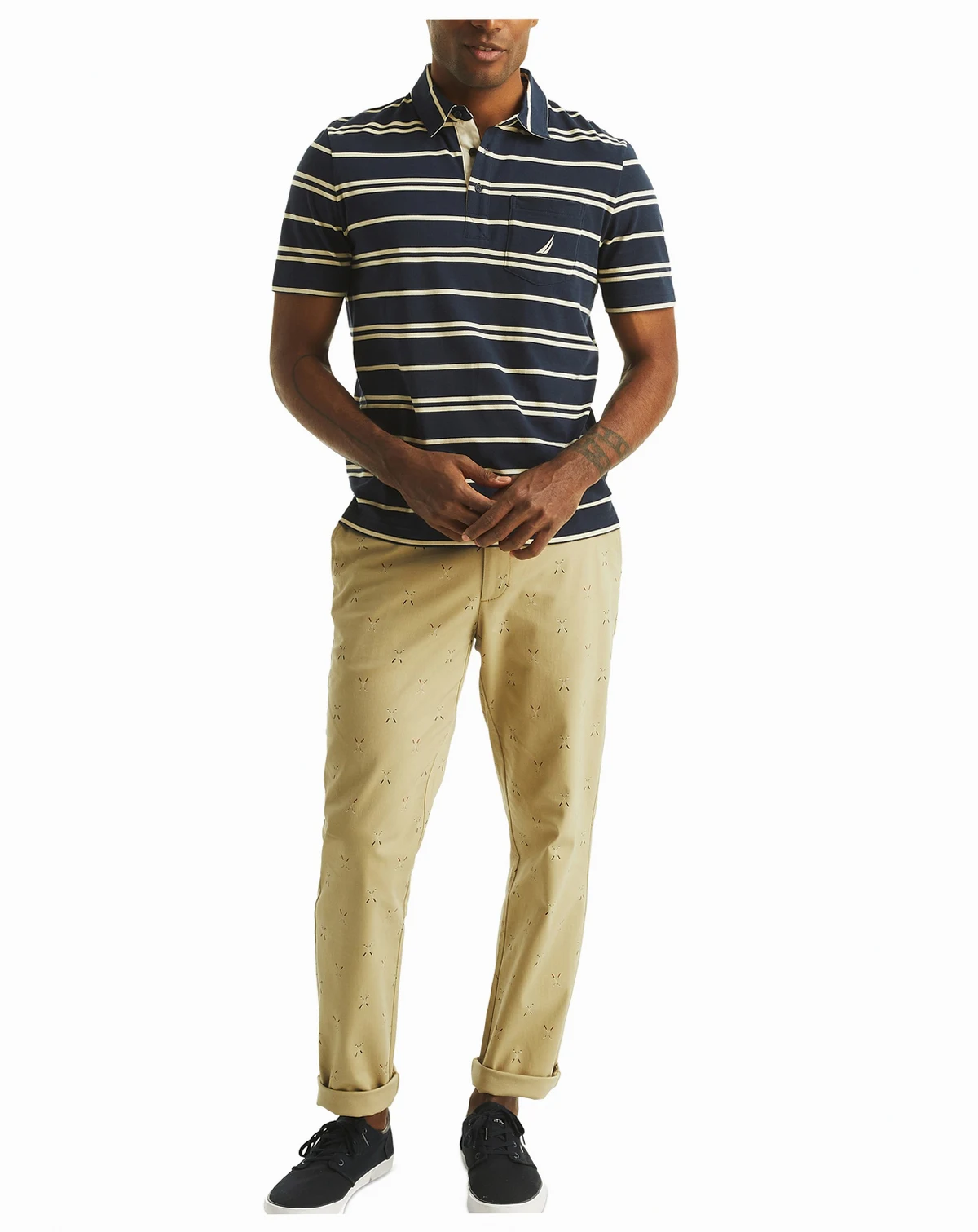 Made from soft fabric, this classic-fit Nautica polo has an all-over striped design, patch chest pocket, and vented hems to keep you cool and comfortable all day long.