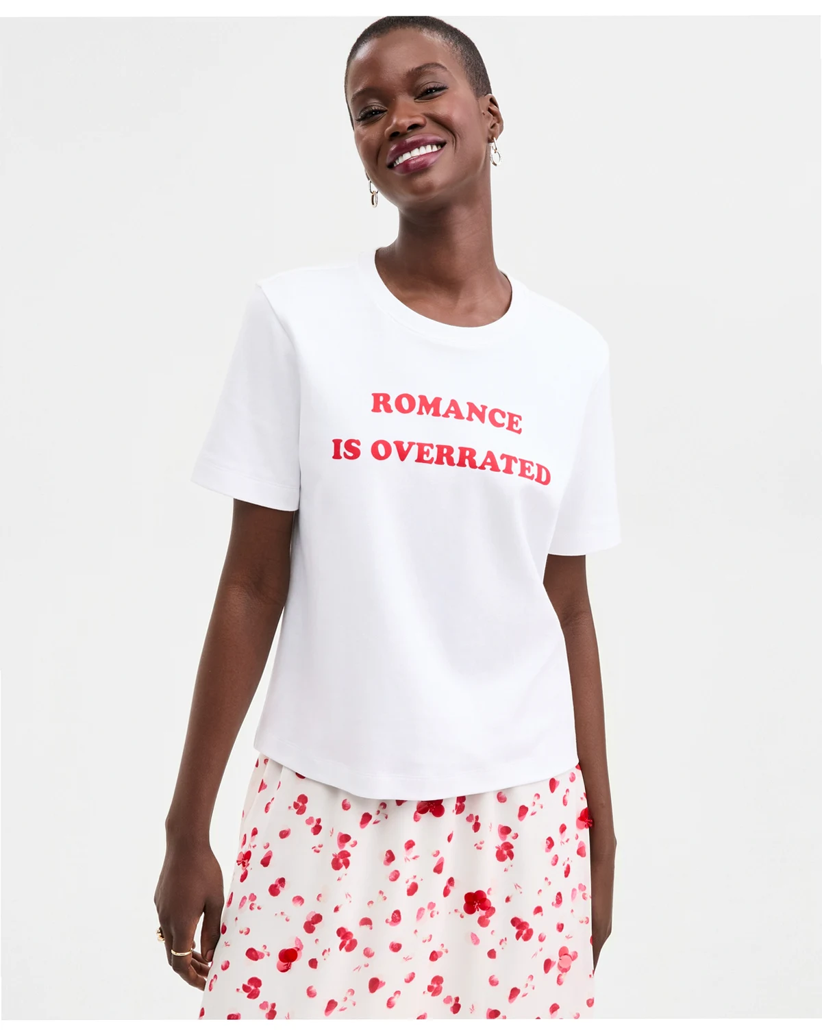 Say cheers to independence with this cheeky "Romance Is Overrated" tee from On 34th. ABOUT THE BRAND: On 34th was designed for and with women like you. Made for your body, your style, and your truth. As your wardrobe's BFF, these mix-and-match pieces work with everything in your closet.