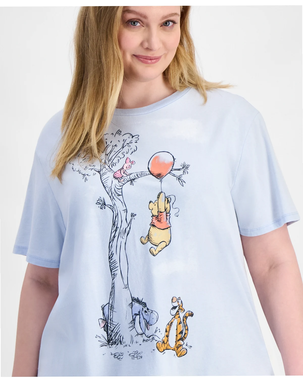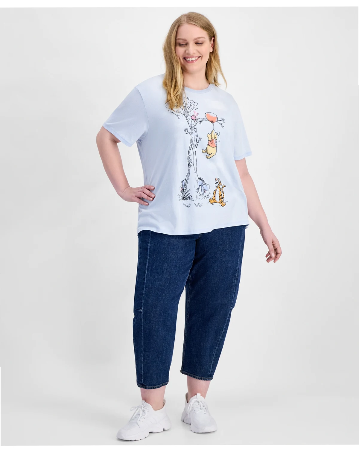So charmingly cute, Disney's comfy plus size T-shirt is emblazoned with a Winnie the Pooh and friends graphic print for a fun take on a casual classic.