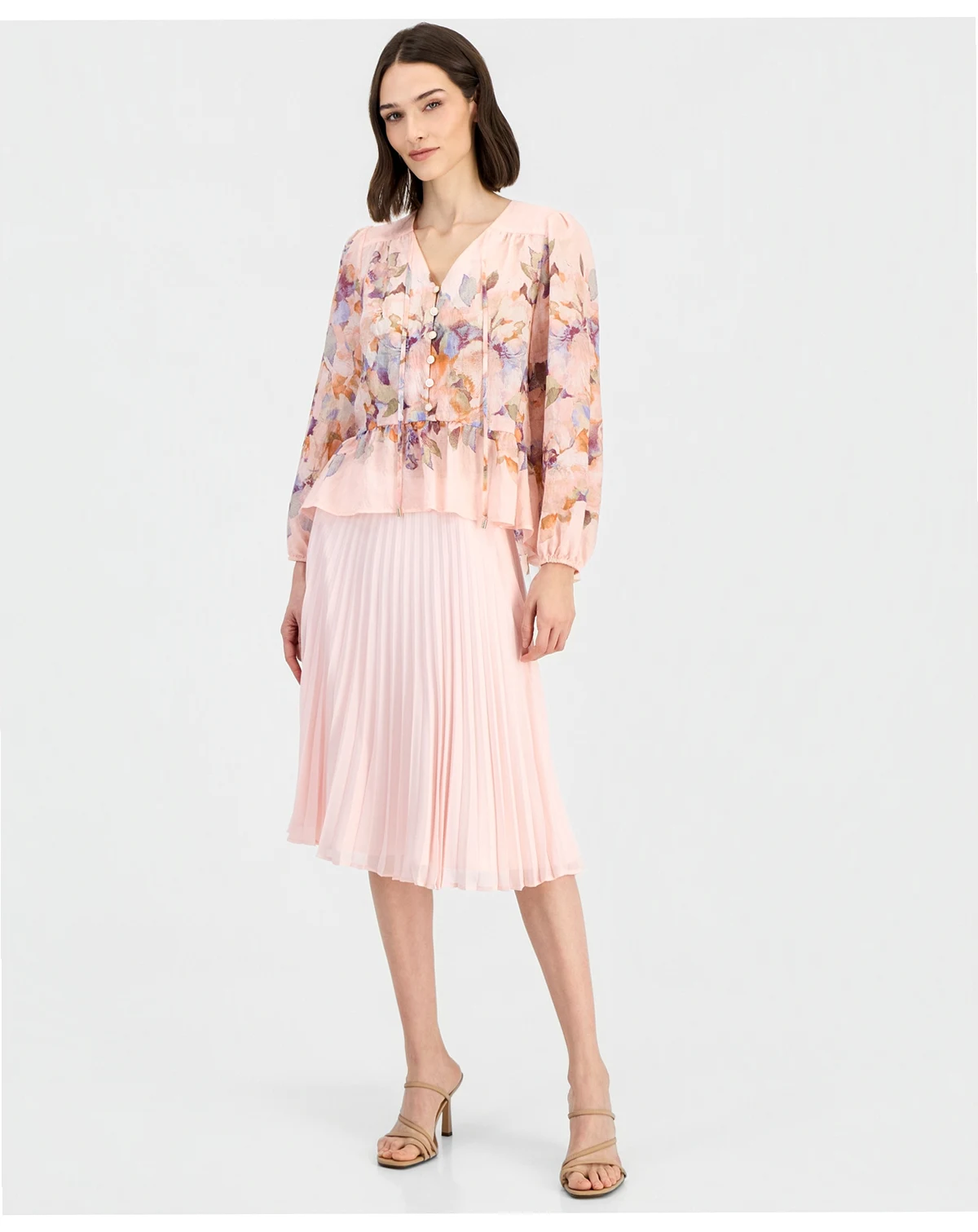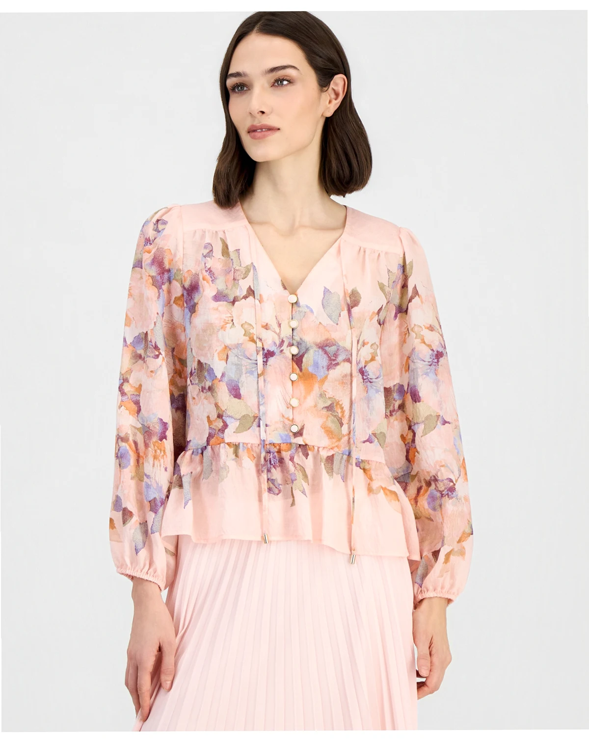 Float through your day in this printed chiffon peplum blouse from Tahari ASL, a dreamy pick for any occasion.