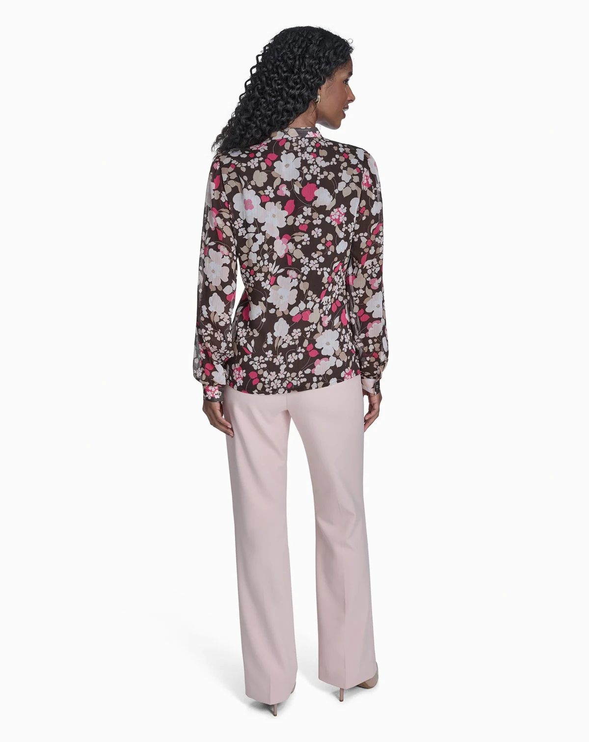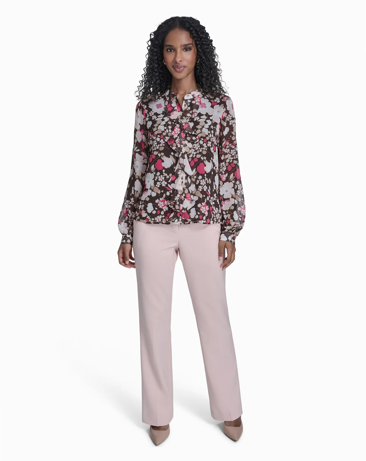 Add a touch of romantic detail with this floral ruffle placket top from Tommy Hilfiger, featuring a collared design and long sleeves. The button closure at the center front offers a classic and versatile style.