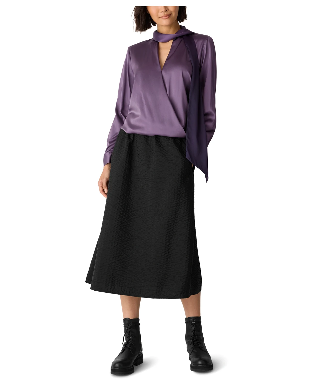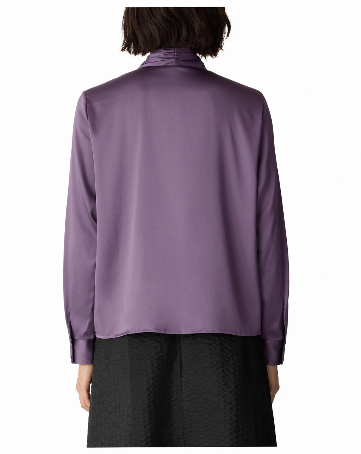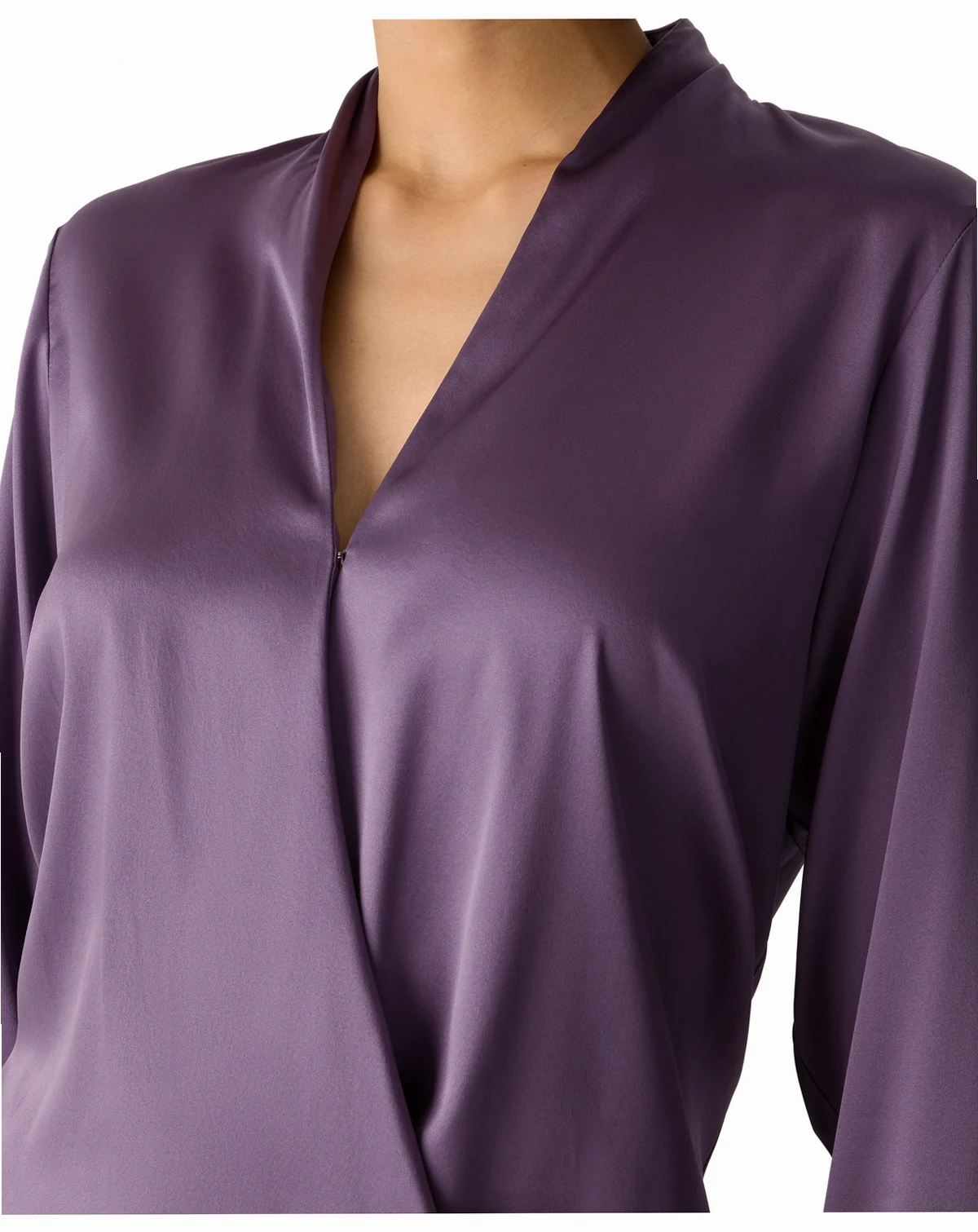 Experience a lustrous, satin-woven silk with a touch of stretch for movement on this Eileen Fisher high collar top. The long sleeves and overlap design create an elegant and versatile silhouette.